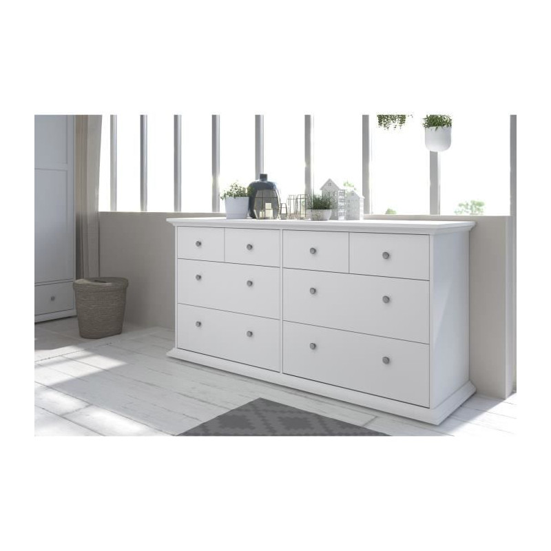 | Libellé | PARISOT Commode 8 Tiroirs Blanc - L 152 x P 46 x H 77 cm - MANON |