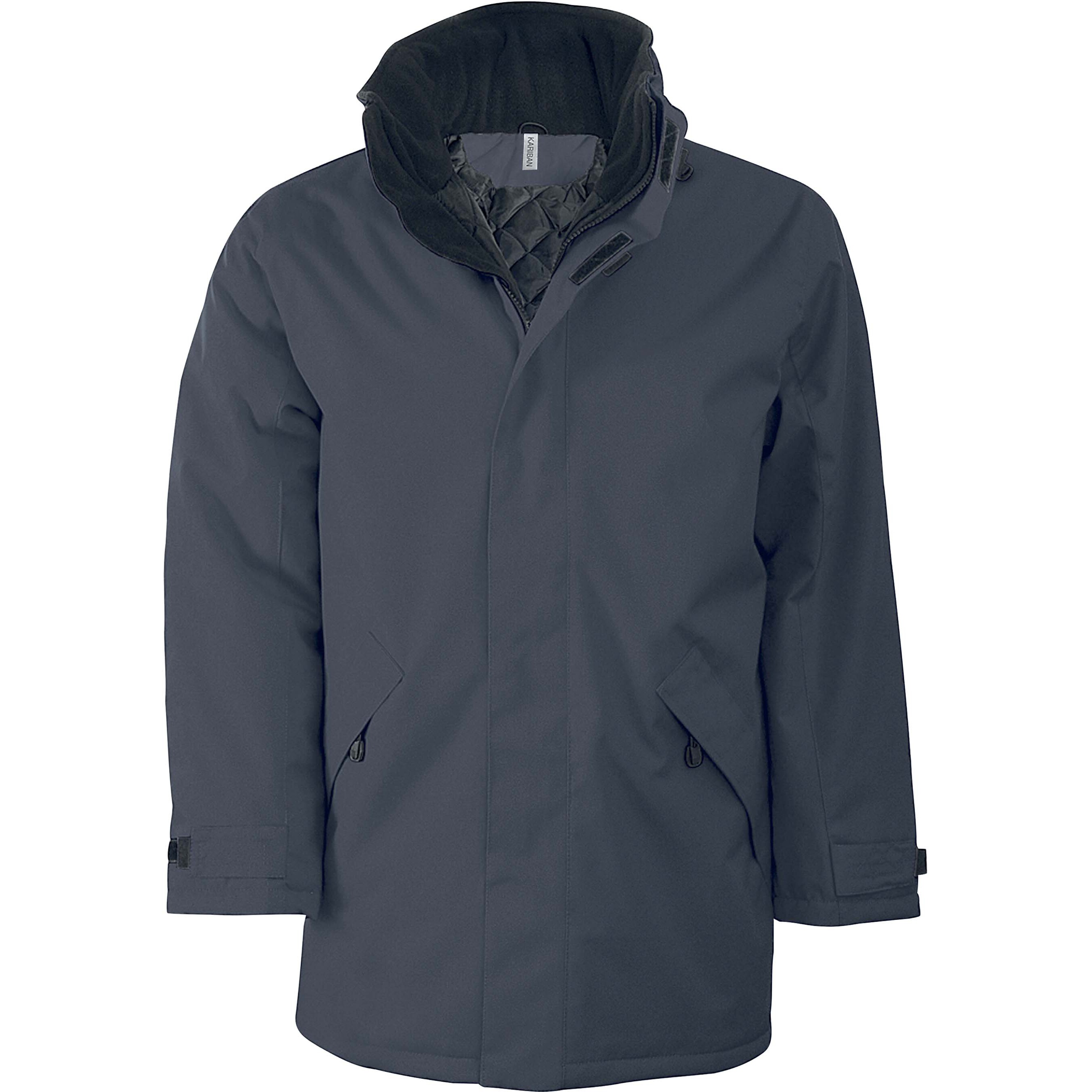 Extérieur : 100% polyester Oxford. Intérieur : polyester matelassé. Fermeture zippée avec patte auto-agrippante et presions invisibles. 2 poches extérieures zippées. 2 poches intérieures. 1 poche pour téléphone portable. Capuche dans le col. Col doublé polaire. Zip pour personnalisation.