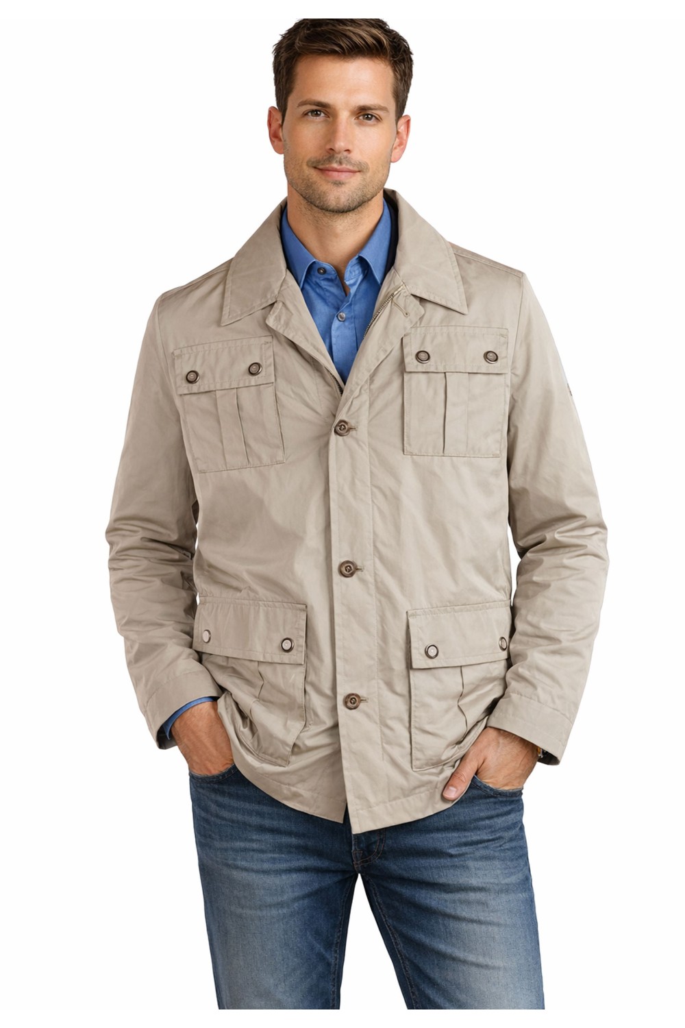 Parka homme fermé par un zip et des boutons sur le devant quatre grande poches plaquées avec boutons pressions: Intérieur partiellement doublé, 2 poches avec zip, cordon de serrage à la taille.