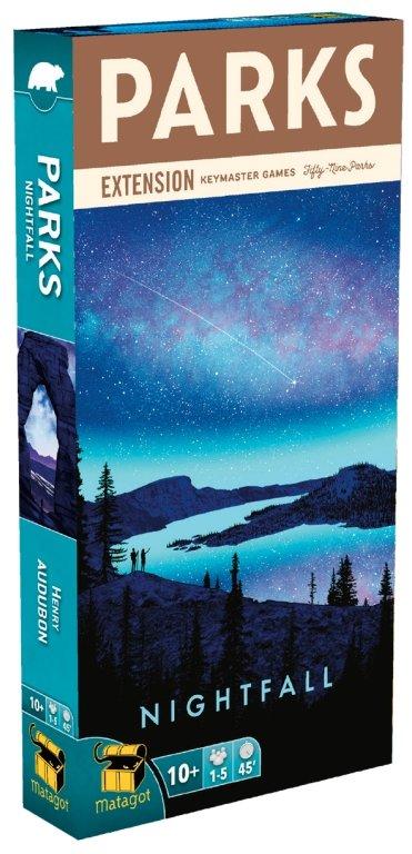à partir de 10 ans 30 min à 1 heure 1 à 5 joueur(s) Nightfall est la première extension pour Parks. Vous y trouverez de nouvelles cartes parcs contenant des actions inédites, des cartes Année avec plus de missions à accomplir et des façons originales d'explorer le parcours grâce aux campings. Vous rencontrerez sûrement d'autres Animaux Sauvages, c'est pourquoi nous avons inclus de nouveaux jetons. Enfin, les nouvelles cartes parcs vous permettront de découvrir des Parcs Nationaux qui n'étaient pas présents dans le jeu de base.Les joueurs incarnent deux Randonneurs qui arpentent au fil des Saisons différents chemins de randonnée. Chaque saison, faites avancer vos randonneurs le long du parcours afin d'acquérir des ressources, des jetons bonus Animaux Sauvages ou de prendre des photos. À la fin du parcours et de la saison, vous pouvez réserver un parc pour vous y rendre plus tard, acheter des équipements ou visiter un parc en payant les ressources nécessaires. Lorsque la quatrième saison se termine, vous marquez des points grâce aux parcs visités, aux photos prises, et à vos objectifs personnels représentés par la carte Année. L'extension Nightfall ajoute de nouveaux parcs à visiter, donnant accès à de nouvelles actions immédiates, de nouvelles cartes année, et intègre le nouveau plateau et tuiles Camping. Certains lieux de parcours saisonnier donnent ainsi accès à un camping et ses actions spécifiques, mails il faudra planifier ses déplacements avec stratégie pour en bénéficier.