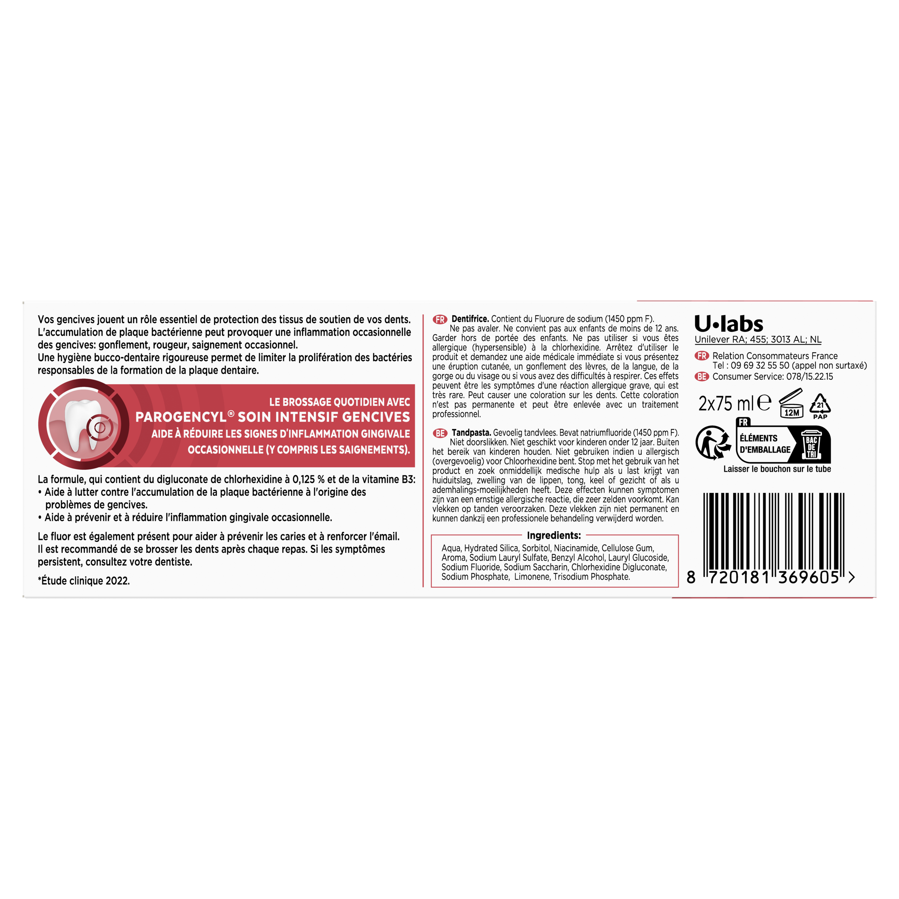 | Libellé | Parogencyl Dentifrice Soin Intensif Gencives 2 x 75ml |