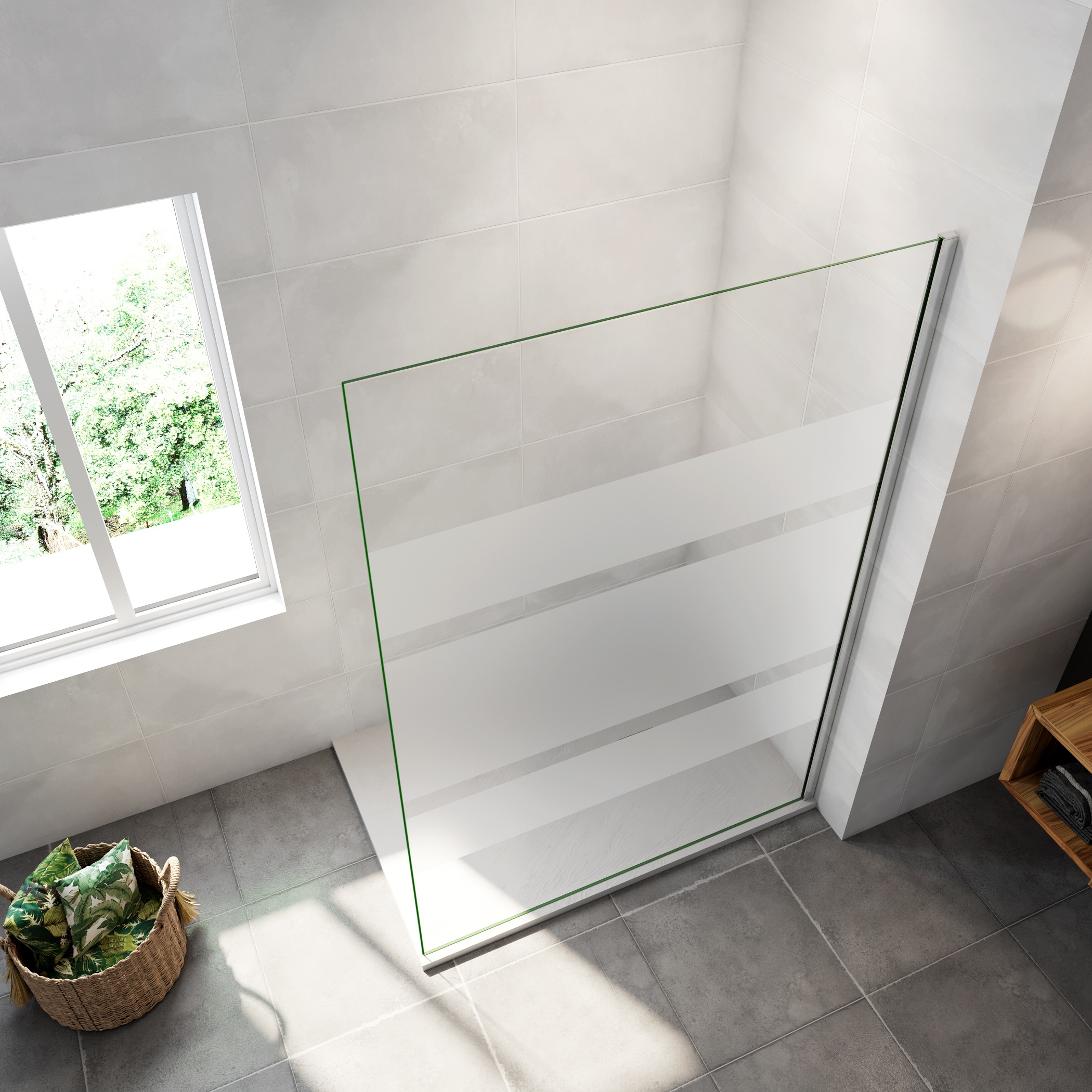 - 6mm verre securit anticalcaire et bandes sérigraphiées - Paroi de douche à l'italienne, finition Chromé, sans barre de fixation