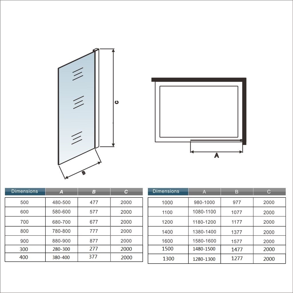 Libellé Paroi de douche à l'italienne - 130x200cm - En 8mm verre trempé clair - AICA - Paroi latérale fixe - En aluminium - Chromé