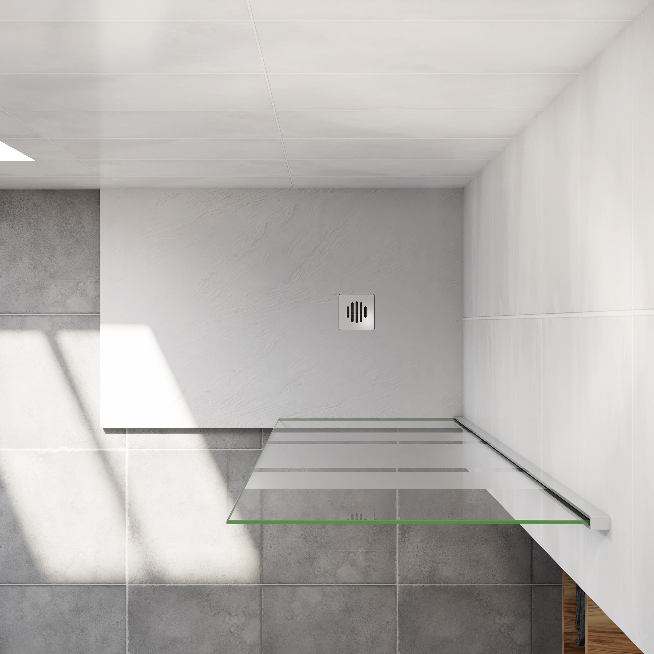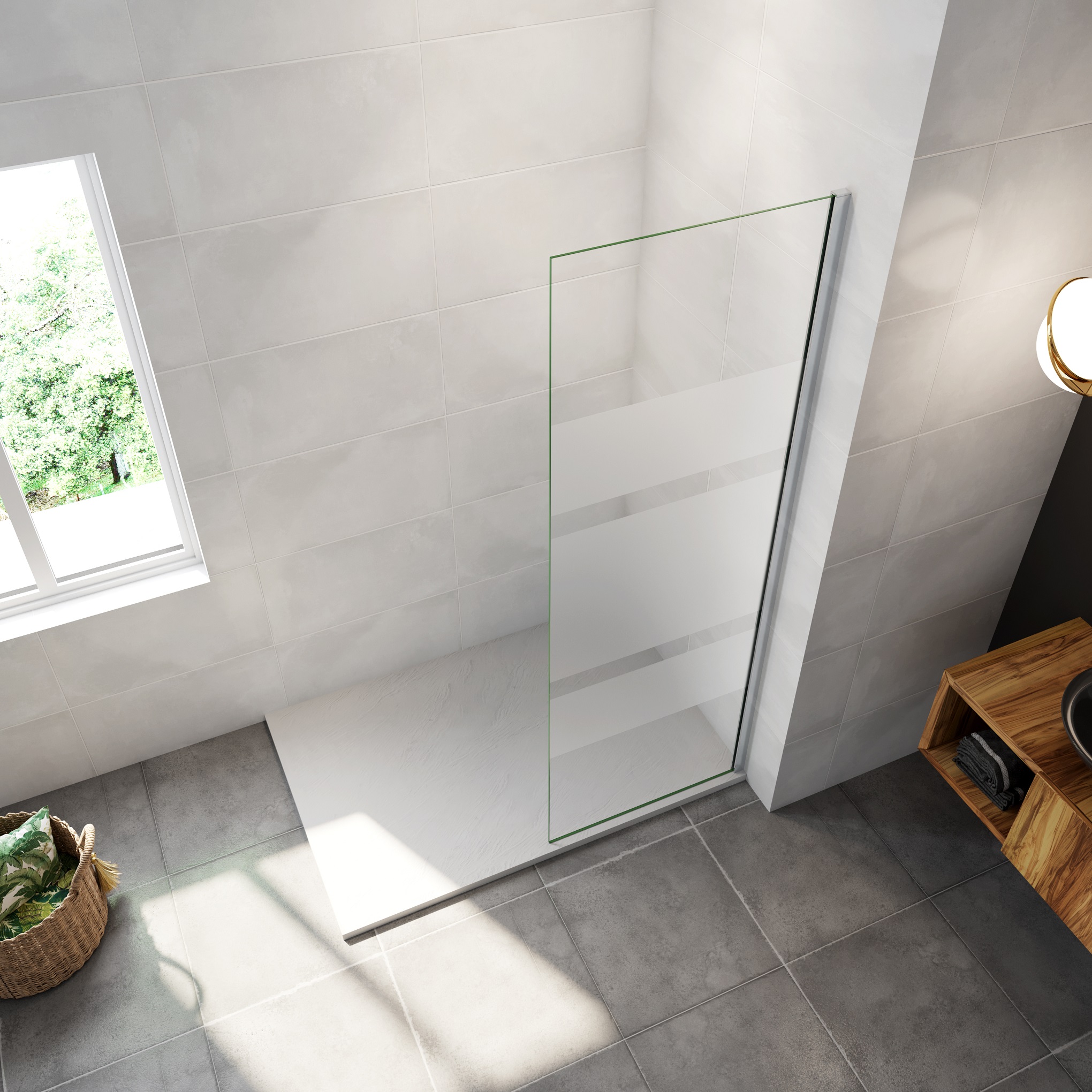 - 6mm verre securit anticalcaire et bandes sérigraphiées - Paroi de douche à l'italienne, finition Chromé, sans barre de fixation