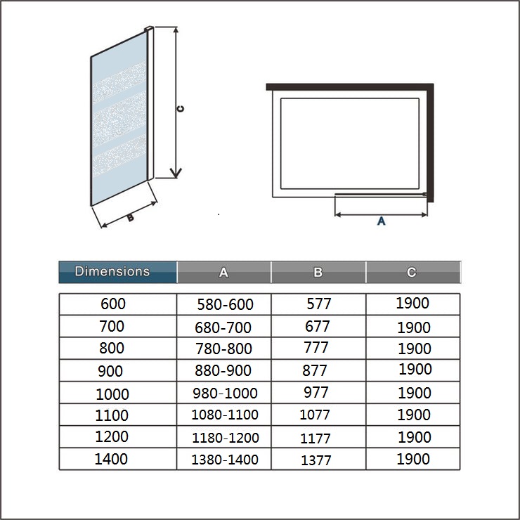 Paroi de douche à l'italienne - 60x190cm - En 6mm verre trempé avec bandes horizontales sérigraphiées - A