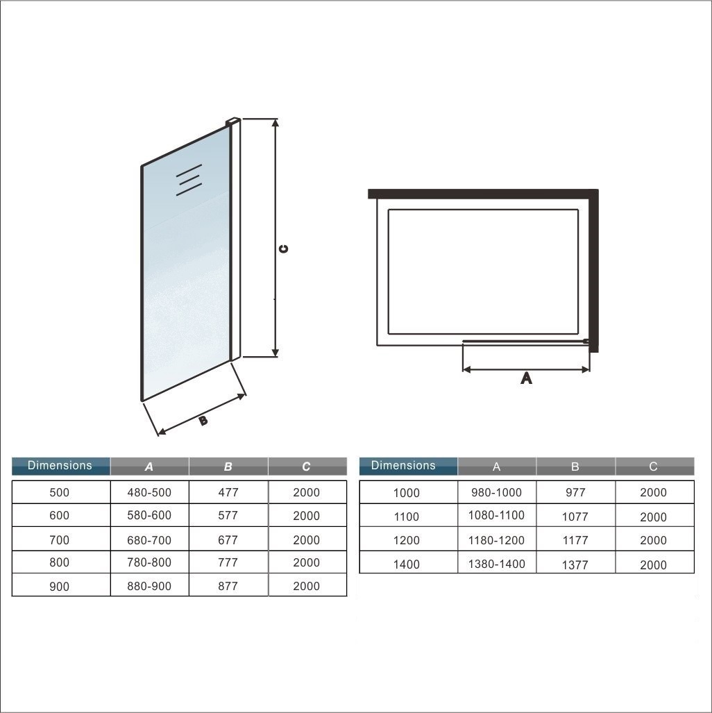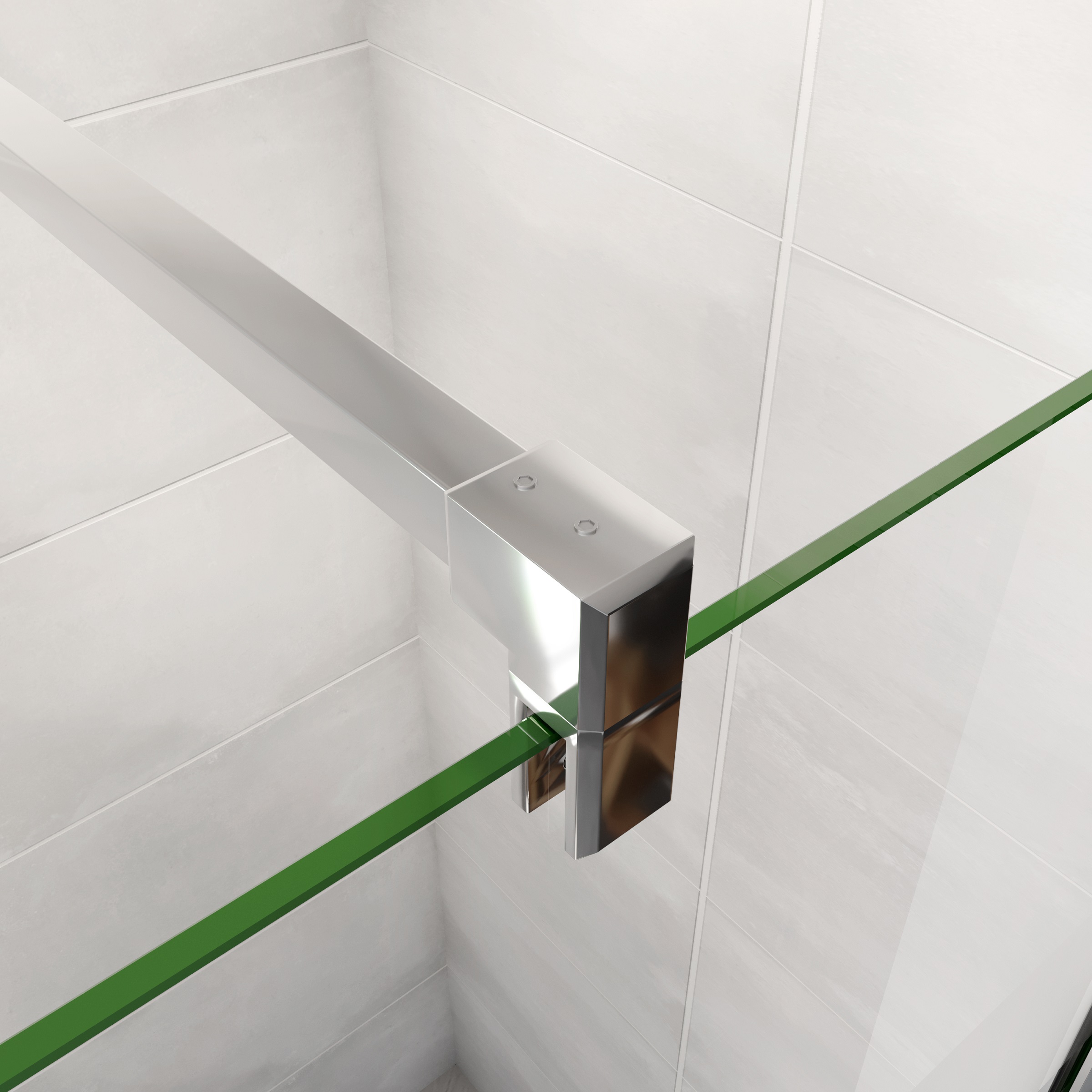- 8mm verre securit anticalcaire et sérigraphié - Paroi de douche à l'italienne, finition Chromé, avec barre de fixation recoupable