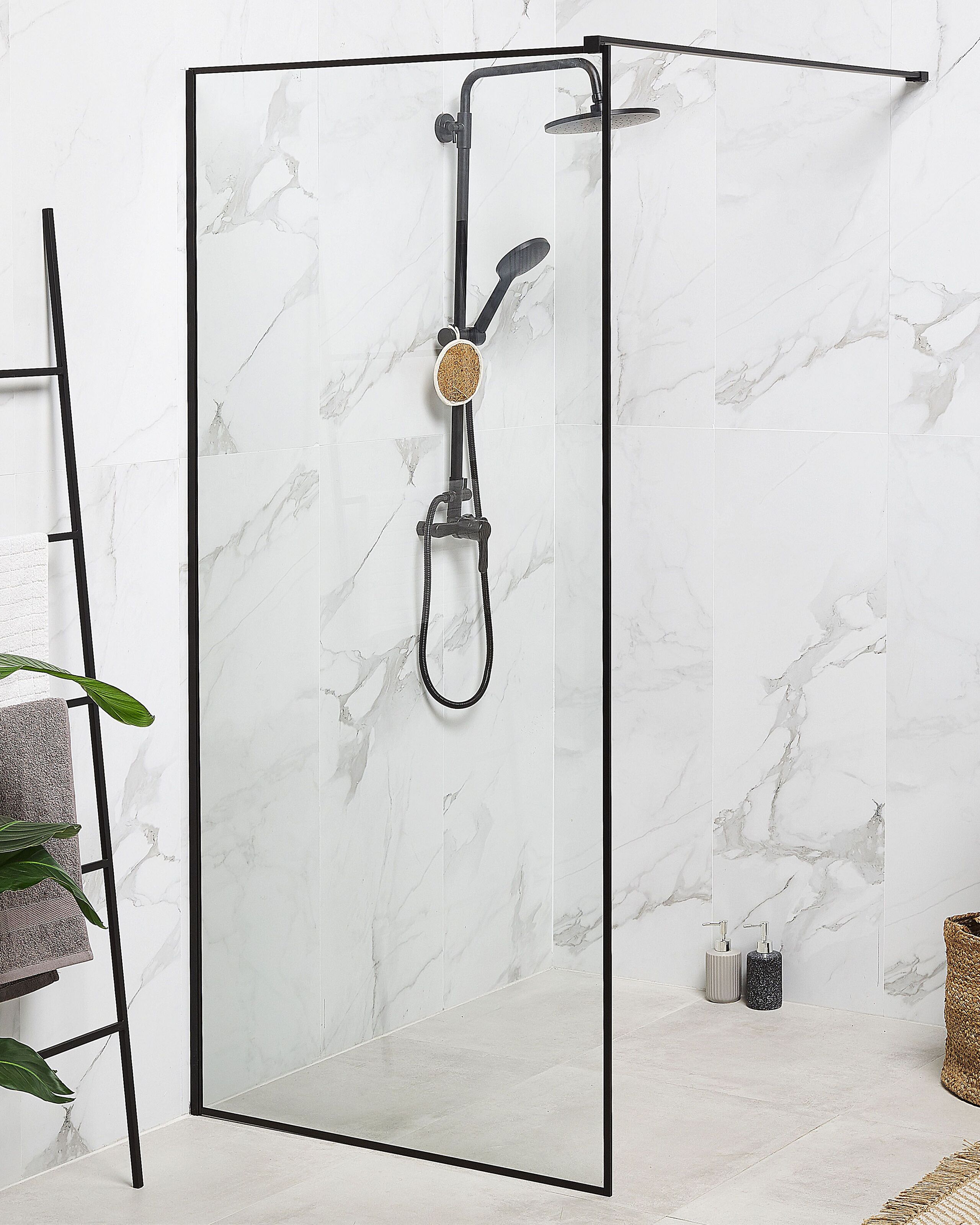 Paroi de douche italienne en verre trempé transparent avec cadre noir. Ajoutez une touche de modernité à votre salle de bains avec cette paroi de douche élégante et minimaliste. Son cadre noir est fait d'acier inoxydable et d'aluminium, ce qui la rend très durable. La paroi simple est en verre trempé, ce qui garantit une protection adéquate de votre espace, tout en étant facile à entretenir. Grâce à son design, cet écran pour salle d'eau peut être associé à une variété de pièces de décoration et de meubles.