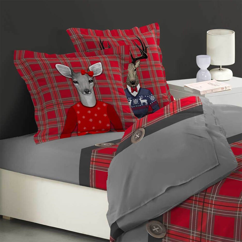 Cette parure 4 pièces Cerafine 2 personnes 100% coton flanelle est composée de :