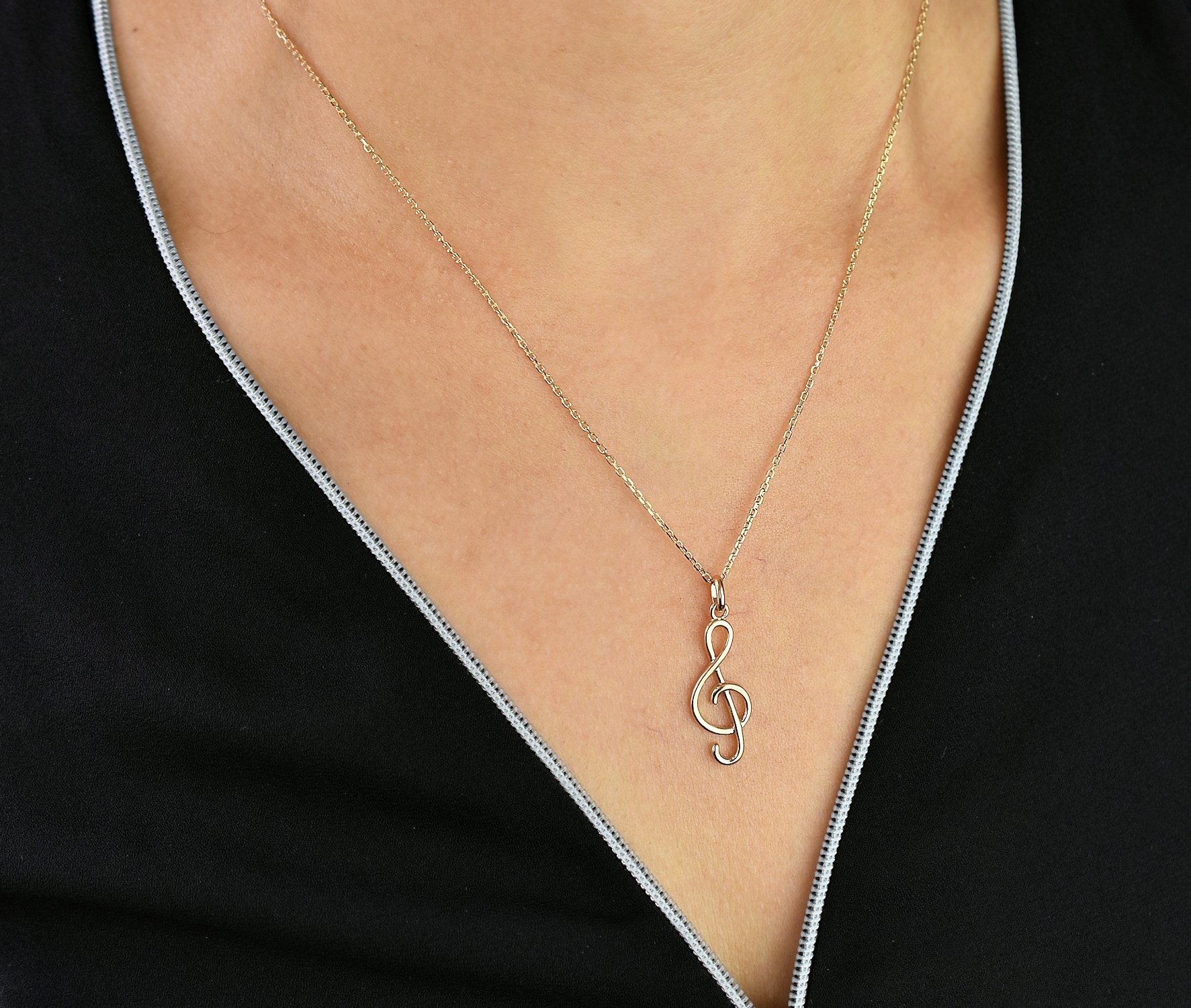 Longueur chaîne : 45 cm, Dimension pendentif clé de sol : 2.4 cm * 1 cm