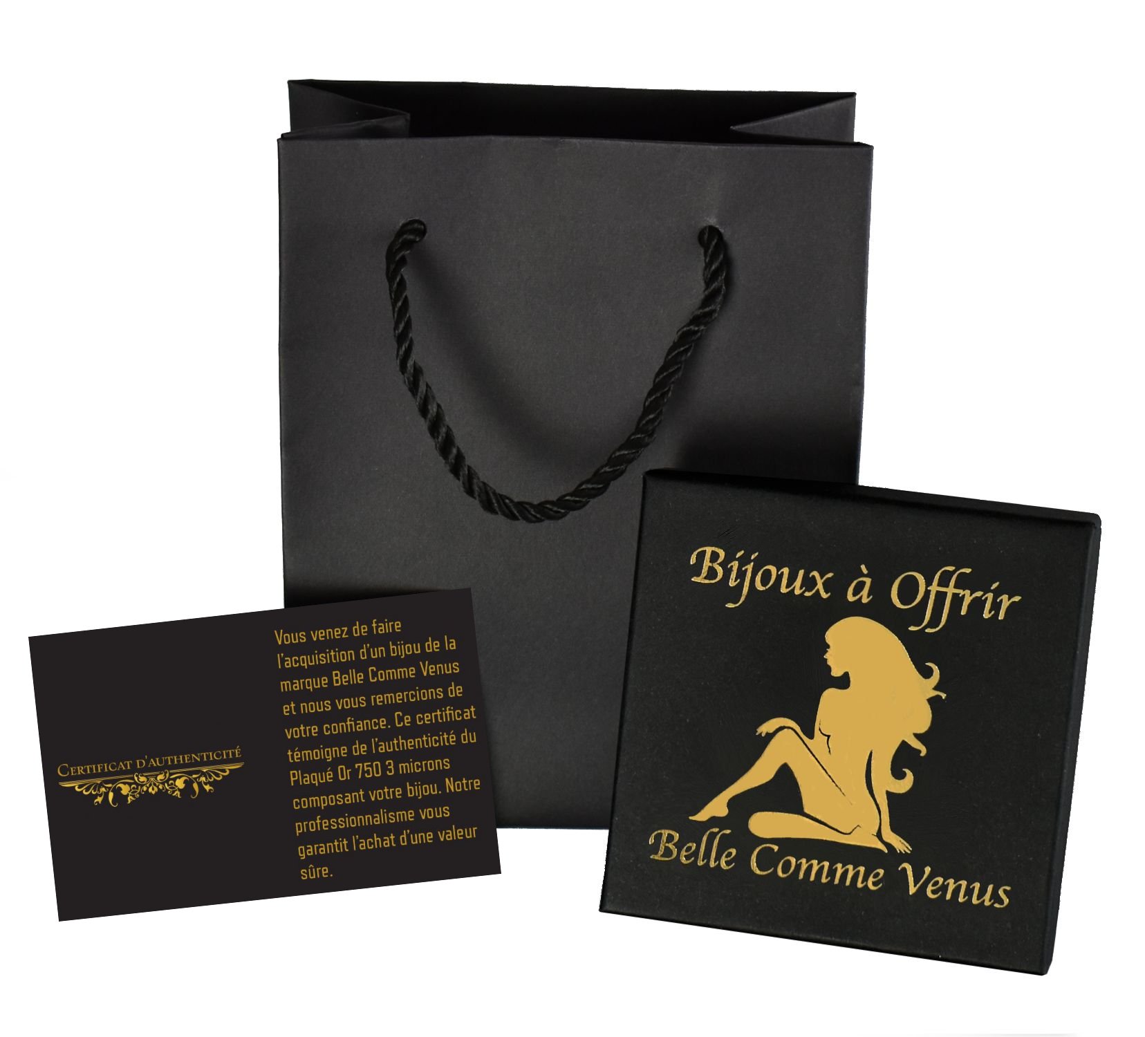 Un bijou est un cadeau très spécial, c'est pour cela que cette parure de bijoux clé de sol note de musique Plaqué OR 750 3 microns est livrée dans un écrin à l'effigie de la marque Belle Comme Venus accompagné de son certificat d'authenticité et de sa pochette cadeau : pour que votre présent soit le plus beau des cadeaux.