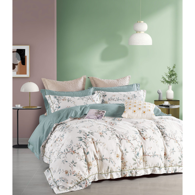 Ce processus donne une apparence plus uniforme au tissu. Associé à ses 80 fils au cm², on obtient un tissu plus souple et plus soyeux dont bénéficient ces parures de couette imprimées.