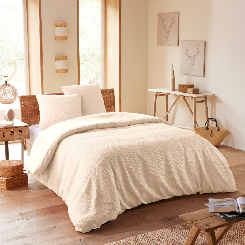 En coton nid d'abeille, une matière légère, fluide et qui donne du relief et de la douceur à votre chambre.