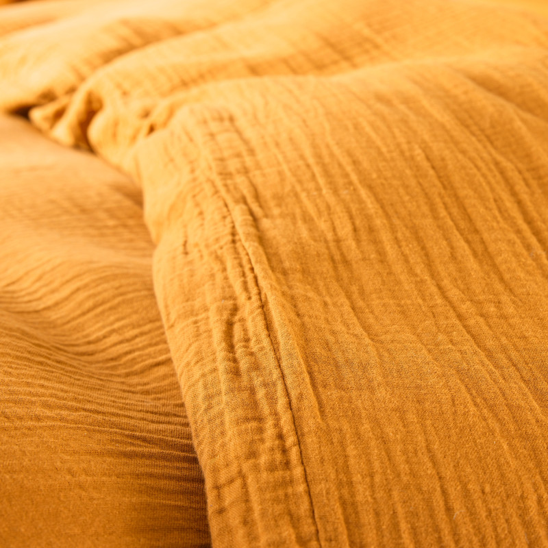 La housse de couette est composée de gaze de coton sur le dessus et de coton 57 fils/cm² sur le dessous.