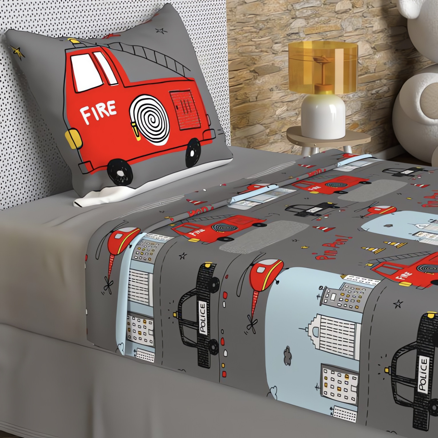 | Libellé | Parure de draps 180x290 cm POMPIERS, 100% coton 57 fils/cm2, par Soleil d'Ocre |