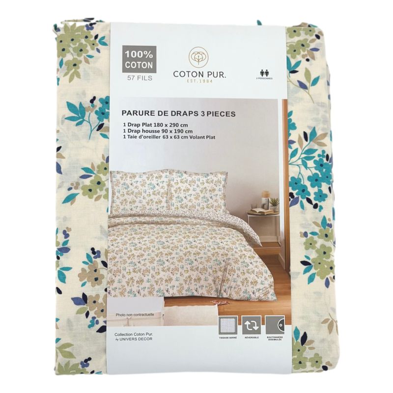 Parure de draps 3 pièces pour lit 1 place en 90 x 190 cm