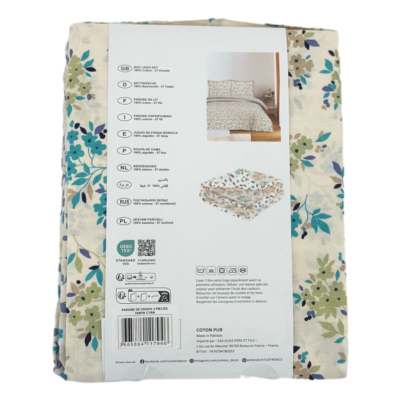 | Libellé | Parure de draps 3 pièces pour lit 90 x 190 cm Tanya cyan |