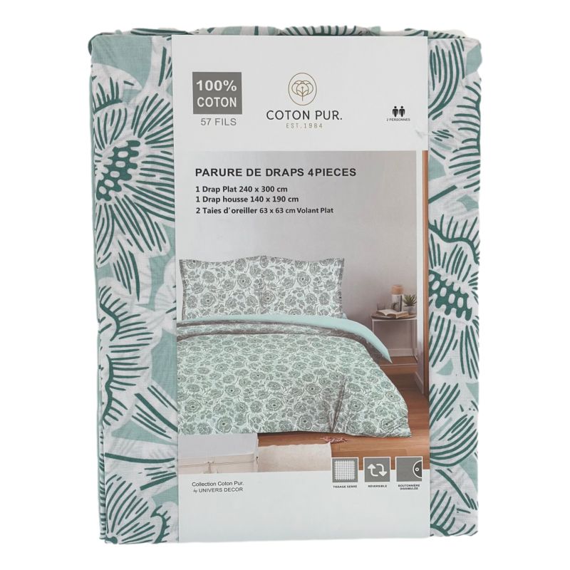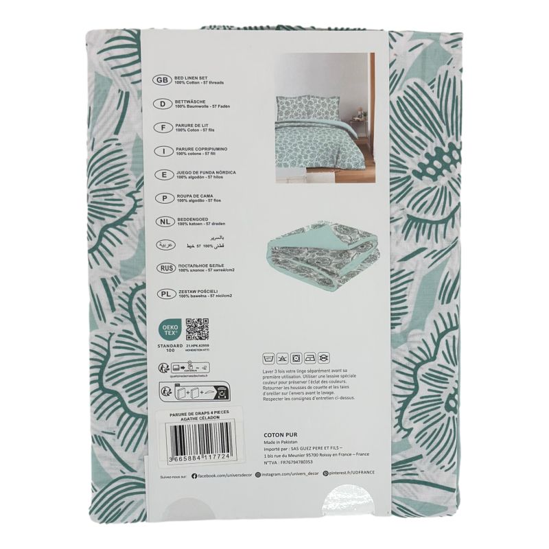 | Libellé | Parure de draps 4 pièces pour lit 140 x 190 cm Agathe céladon |
