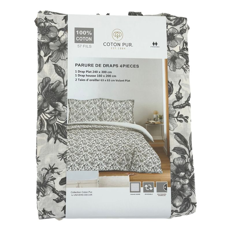 Parure de draps 4 pièces pour lit 160 x 200 cm "Grande largeur" 100% coton / 57 fils/cm²