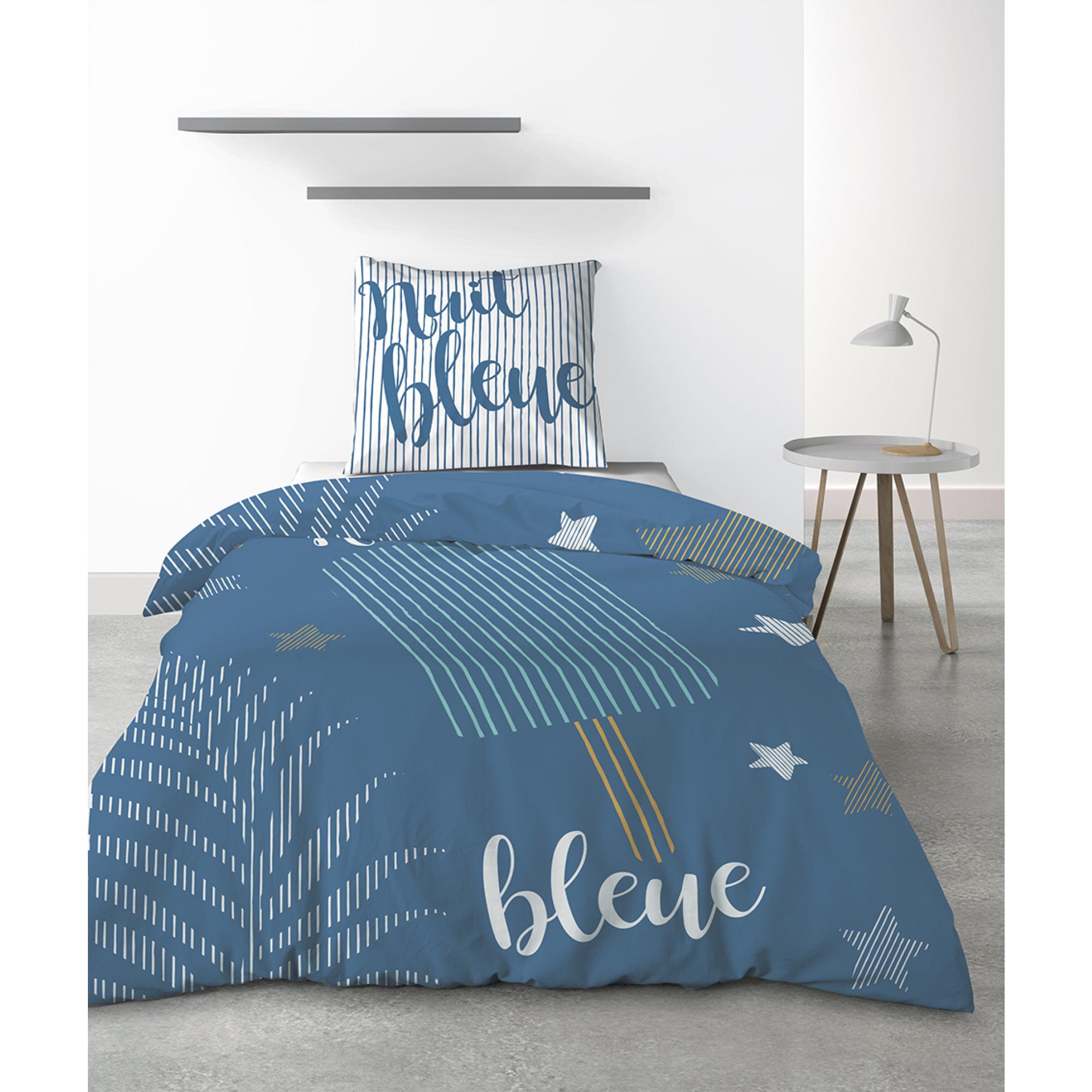 Parure de lit 1 personne Nuit bleue avec housse de couette et taie d'oreiller