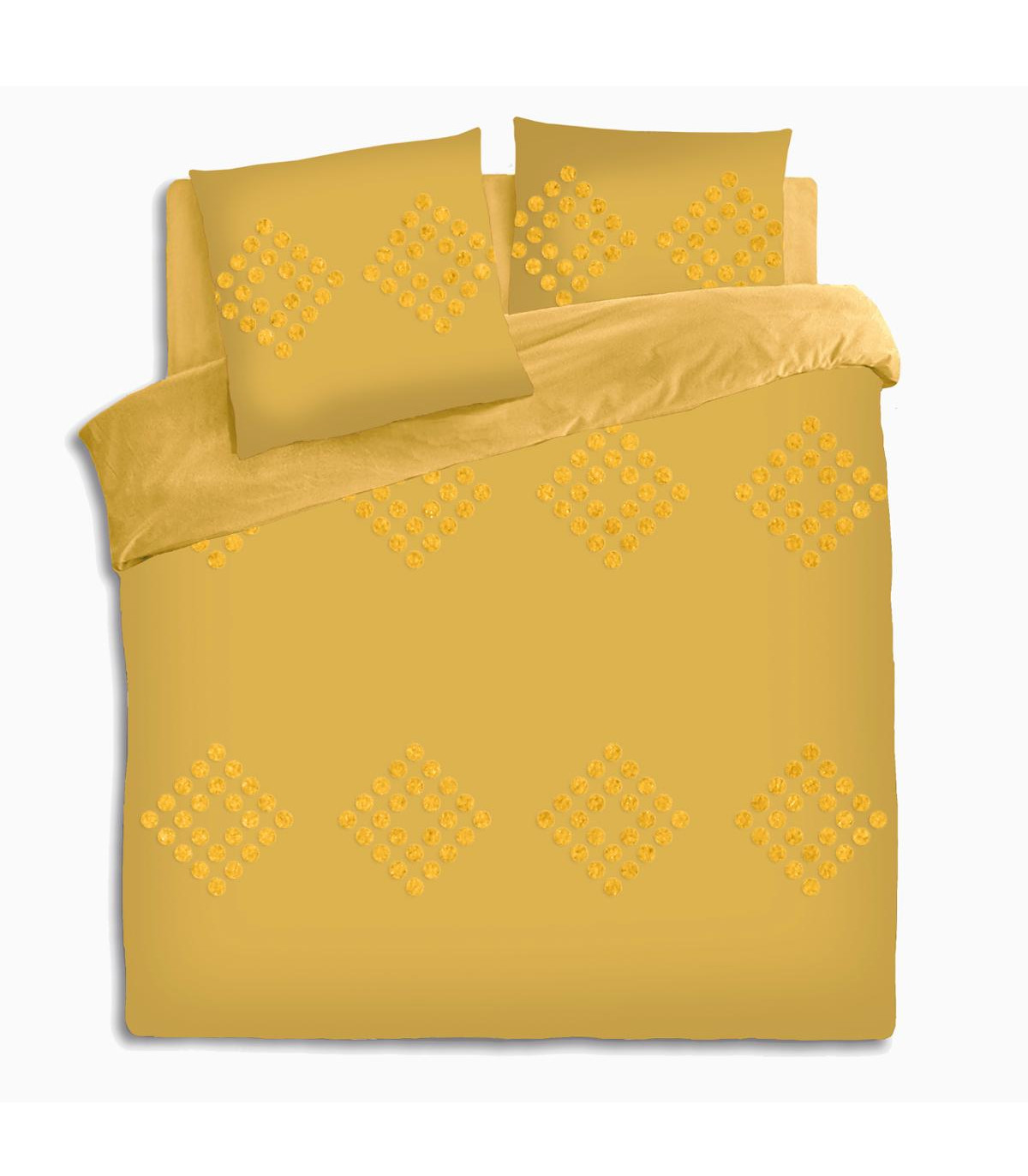 | Libellé | Parure de lit 2 Personnes 240 x 220 cm Housse de couette avec 2 taies en Coton lavé Ocre et tufté |