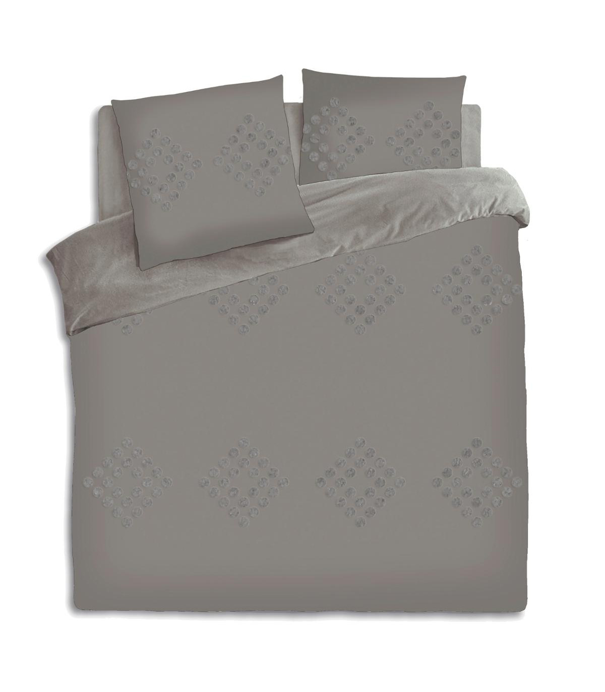 La parure se compose d'une housse de couette et de 2 taies d'oreiller -