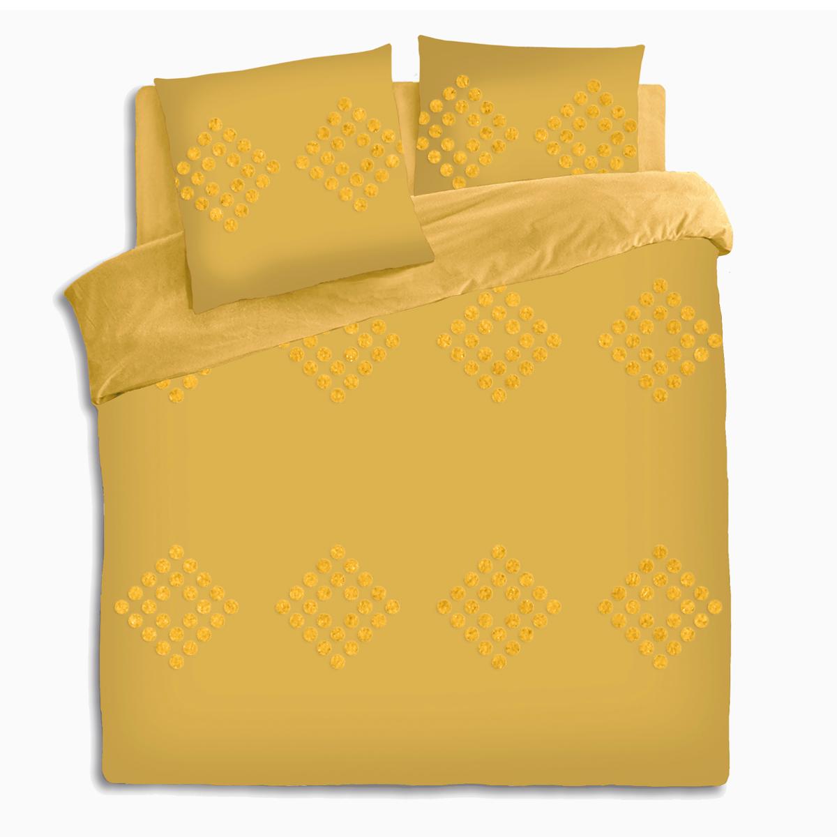 | Libellé | Parure de lit 2 Personnes 260 x 240 cm Housse de couette avec 2 taies en Coton lavé Ocre et tufté |