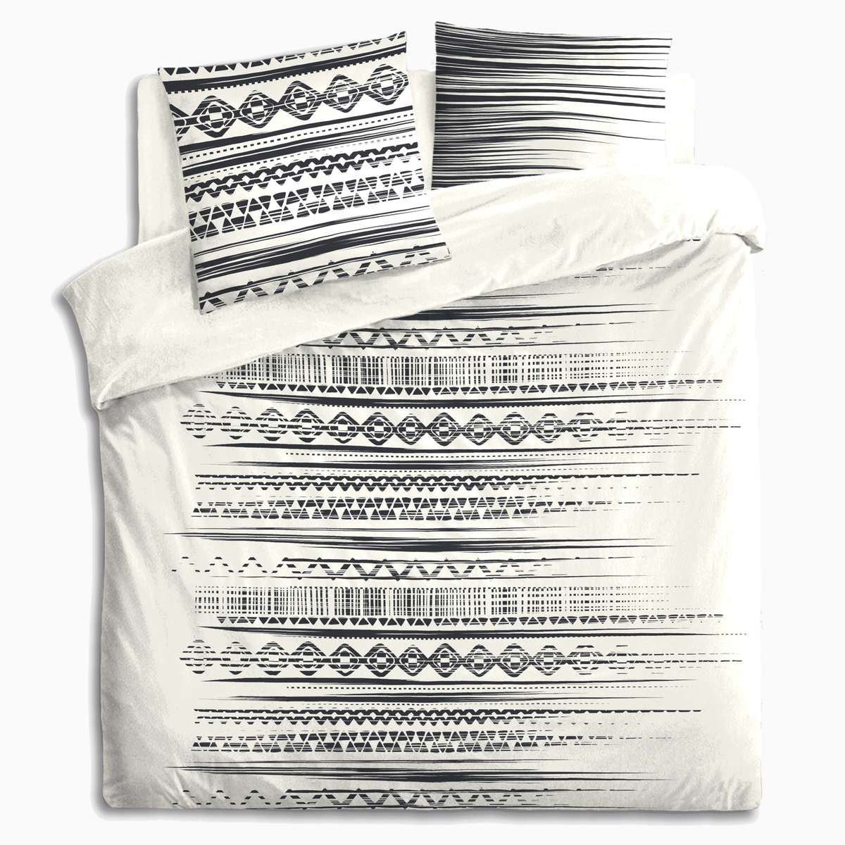 La parure se compose d'une housse de couette et de 2 taies d'oreiller -