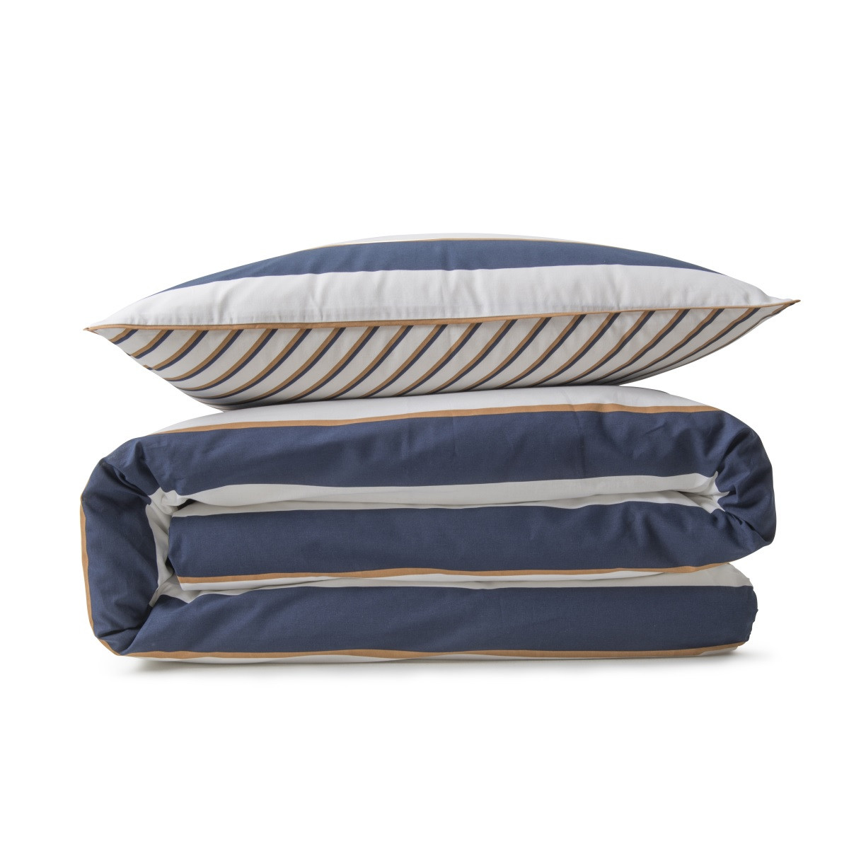 Parure de lit en coton réversible imprimé rayure 57 fils bleu et blanc - NOLWENN - FUTURE HOME