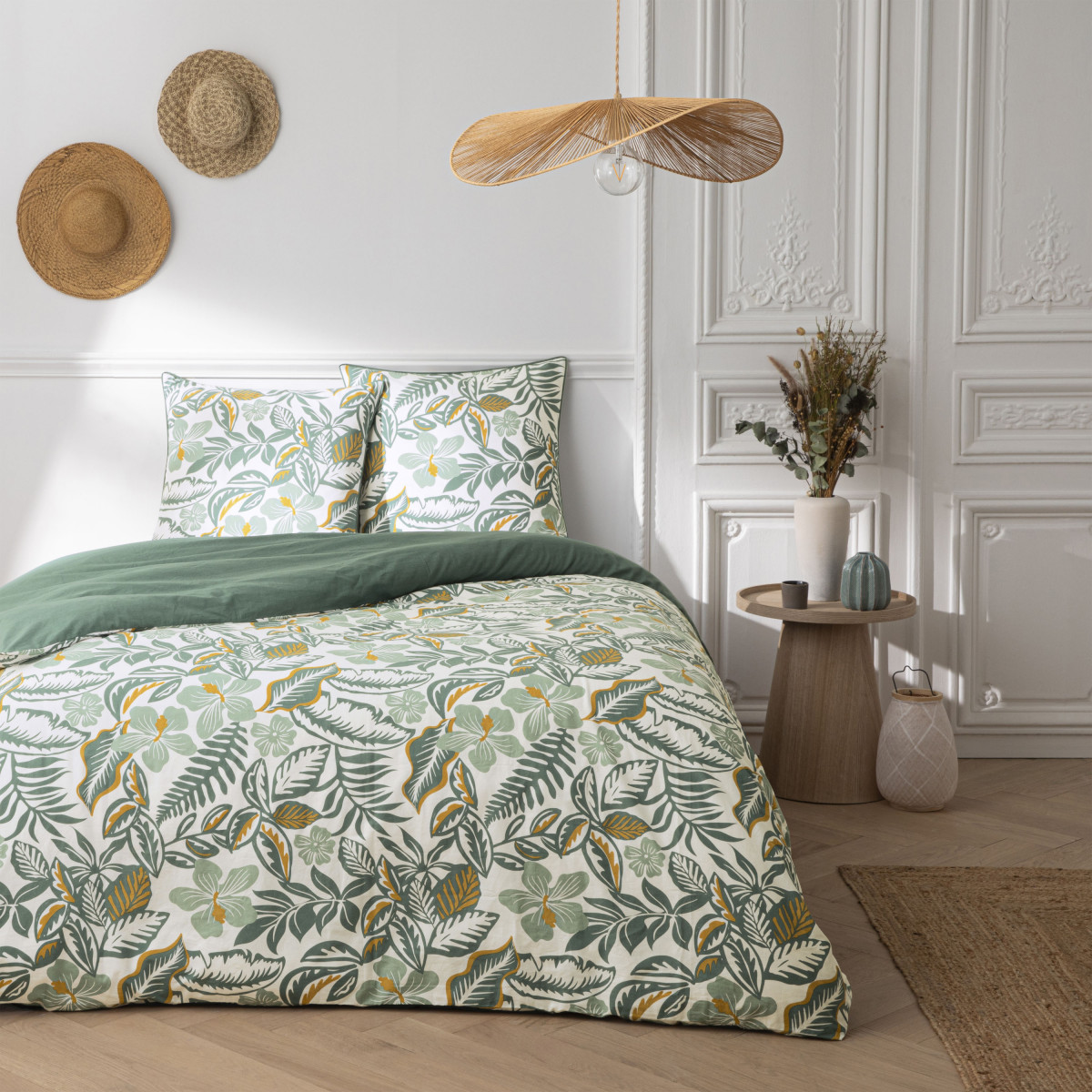 Parure de lit 2 personnes imprimé végétal réversible