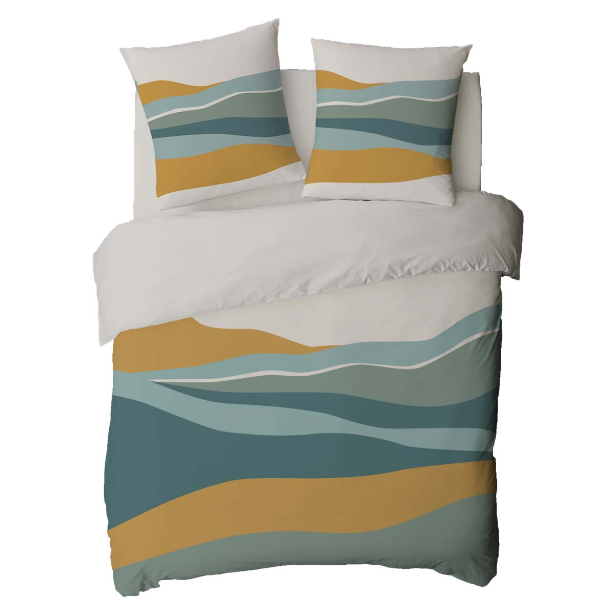 Parure de lit en coton réversible imprimé landscape 57 fils multicouleurs comprenant 1 housse de couette + 2 taies d'oreiller 63x63cm.
