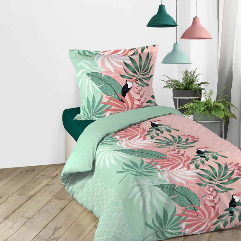 Libellé Parure de Lit 2 Pièces "Balila" 140x200cm Vert & Blanc