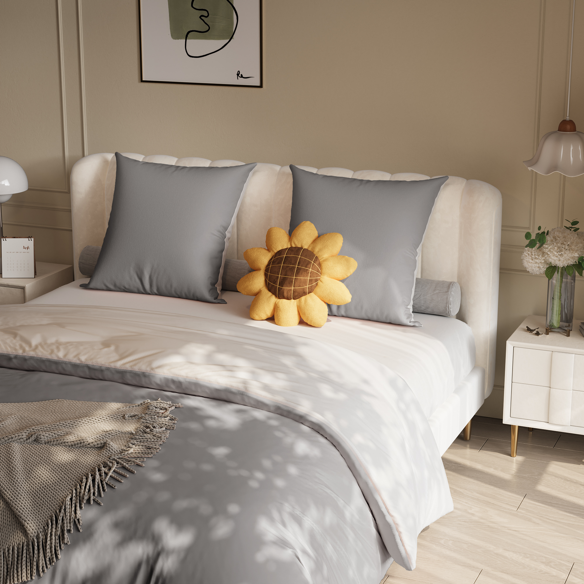 Parure De Lit 4 Pièces 140x200 Cm-housse De Couette,drap Housse,2 Taies D'oreiller-gris Foncé+gris