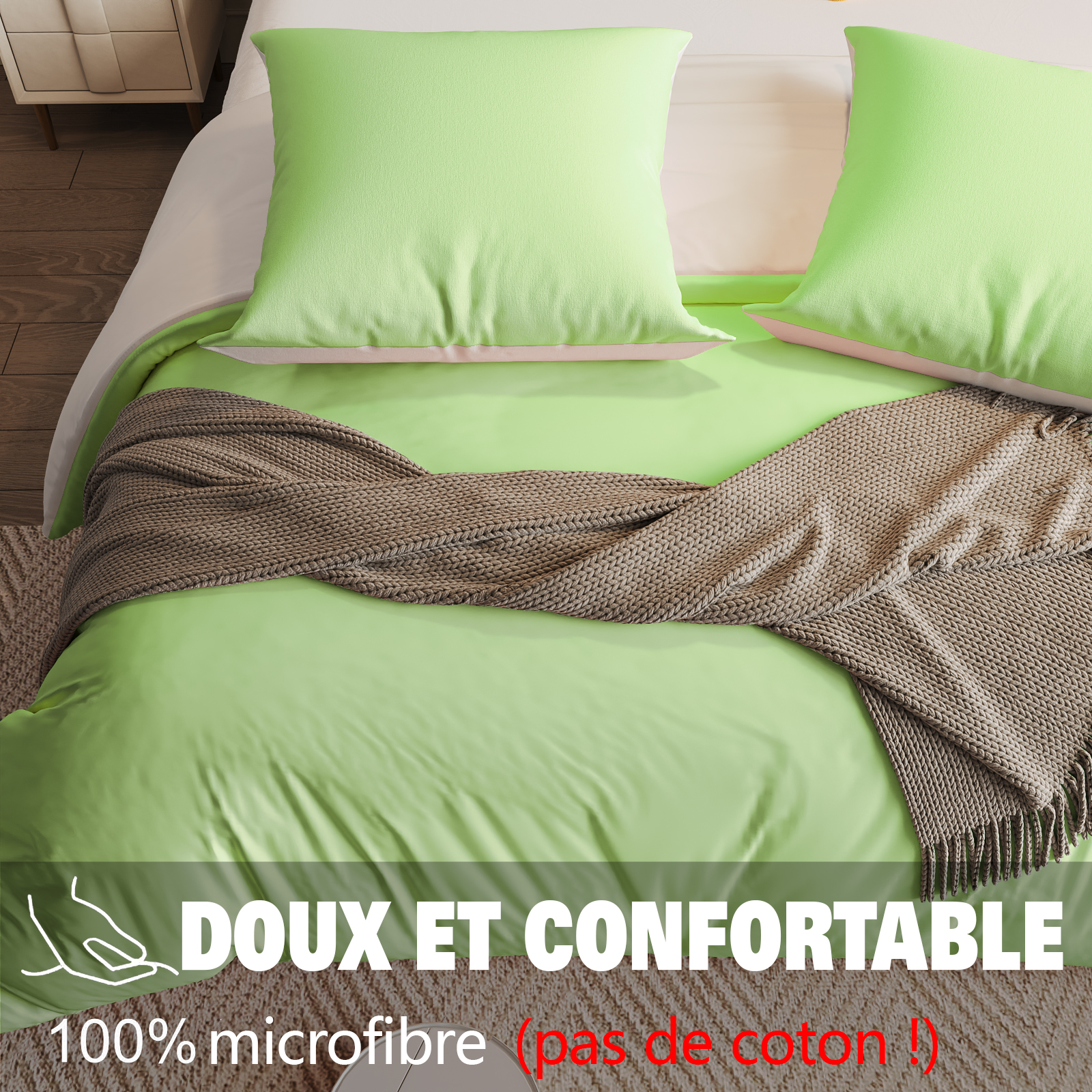 | Libellé | Parure De Lit 4 Pièces 160x200 Cm-housse De Couette,drap Housse,2 Taies D'oreiller-vert + Blanc |