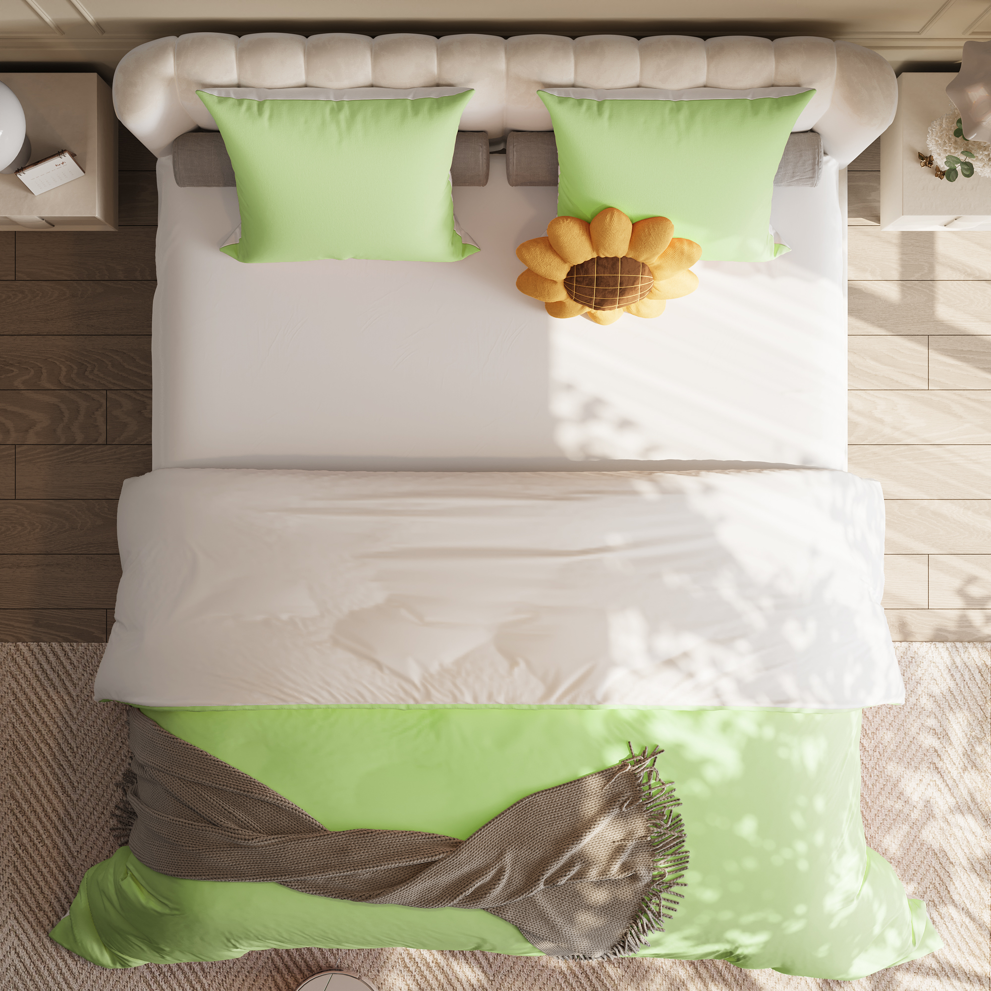Parure De Lit 4 Pièces 160x200 Cm-housse De Couette,drap Housse,2 Taies D'oreiller-vert + Blanc