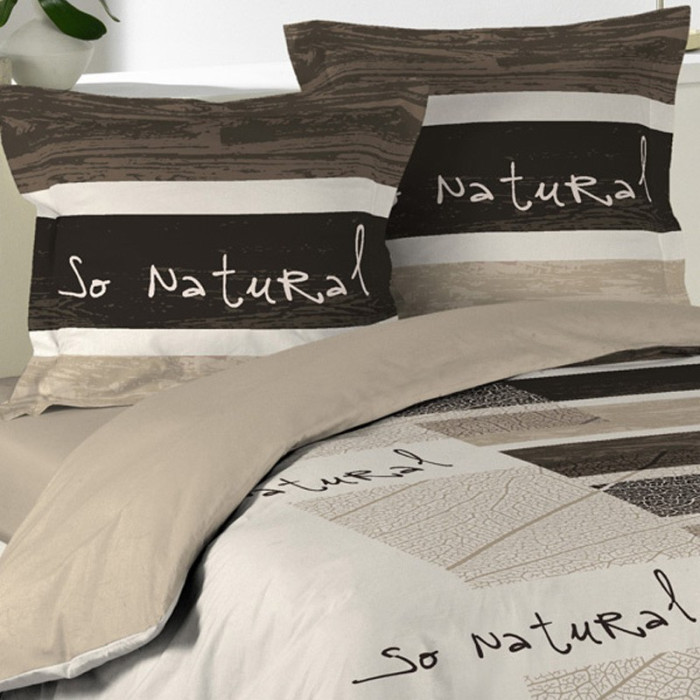 Libellé Parure de lit Coton Beige -SO NATURAL - Douceur d'Intérieur