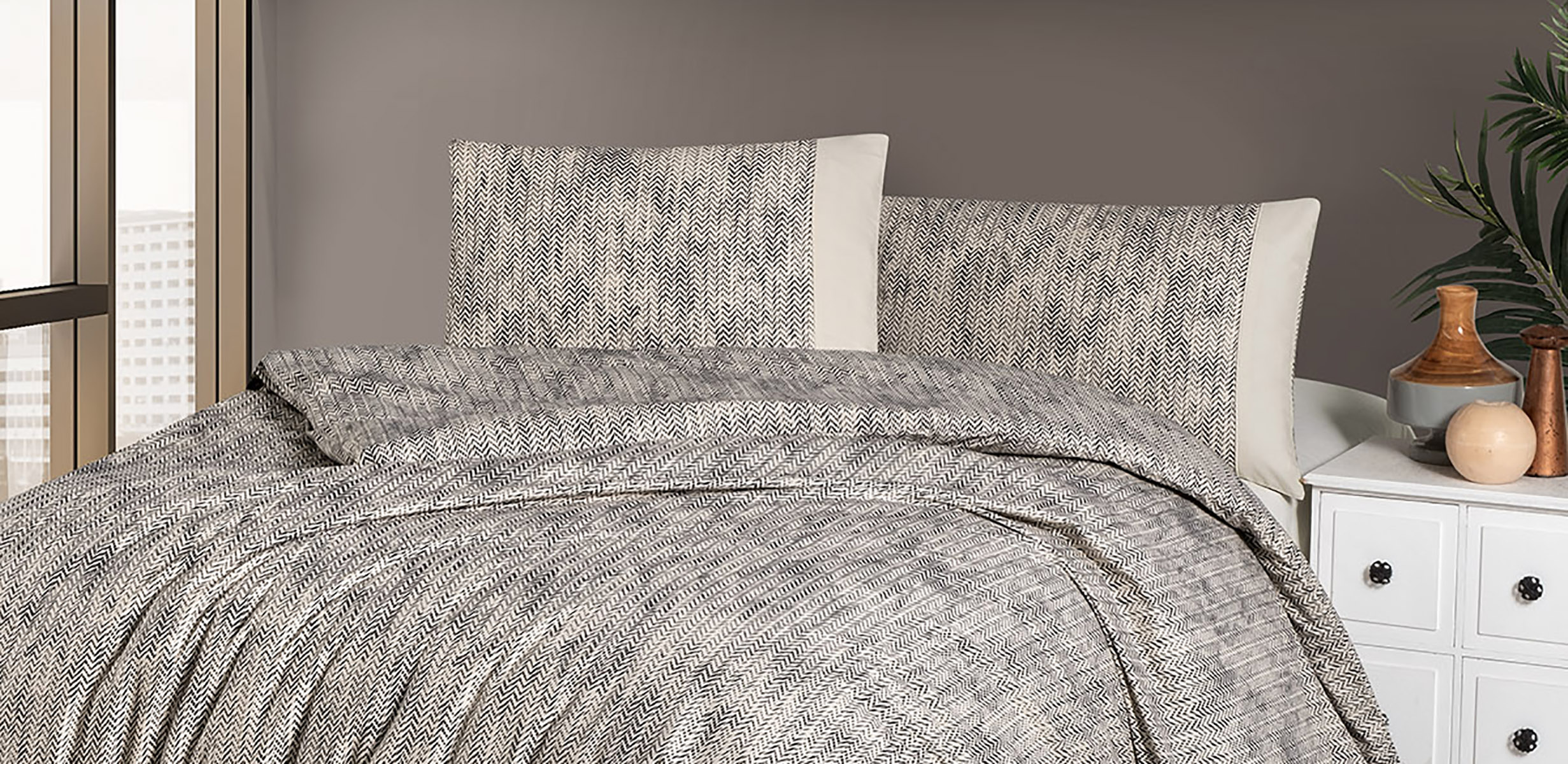 Parure de lit - Housse de couette ouverture: boutons + taie d’oreiller 65x65 cm– Composition 100% Coton 144 TC (57 fils/cm2) Lavable en machine 60°C. Produit certifié OEKO-TEX : le label Oeko-Tex®garantit que les articles certifiés ne présentent pas de substances nocives pouvant nuire à la santé. Tailles 140x200 cm +1 TO pour 1 personne, 200x200 cm +2 TO pour 1 ou 2 personnes, 240x220 cm +2 TOpour 2 personnes. Cette parure de lit a été conçue pour un confort absolu. Pour conserver l’éclat des couleurs, nous recommandons un lavage à 60 °. Si vous optez pour un passage au sèche-linge, choisissez une température modérée afin de préserver les fibres. Votre linge de lit gagnera en douceur après plusieurs lavages.