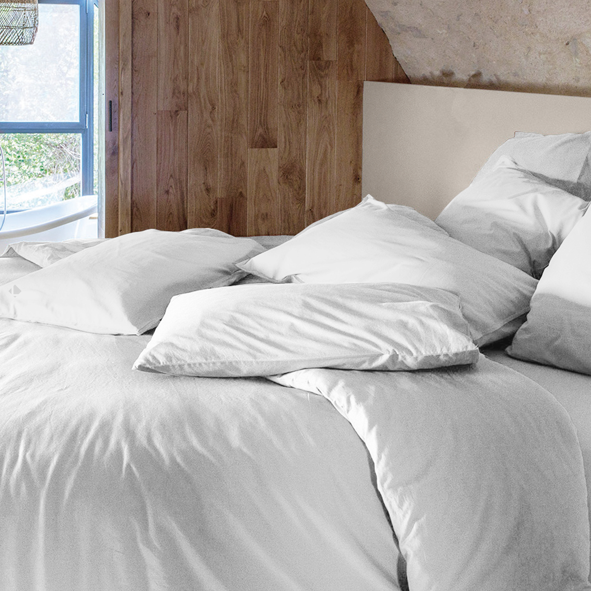 Parure de lit 240x220 cm et 50x70 cm 100% coton lavé collection PALACE blanc neige 3 pièces