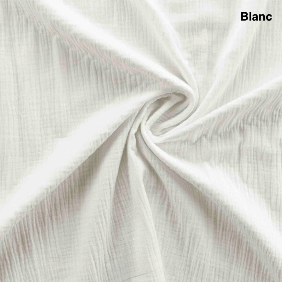 Ce tissu en gaze de coton tissée 57 fils/cm2 saura vous tenir chaud en hiver et tempérée la température en été pour des nuits confortable.