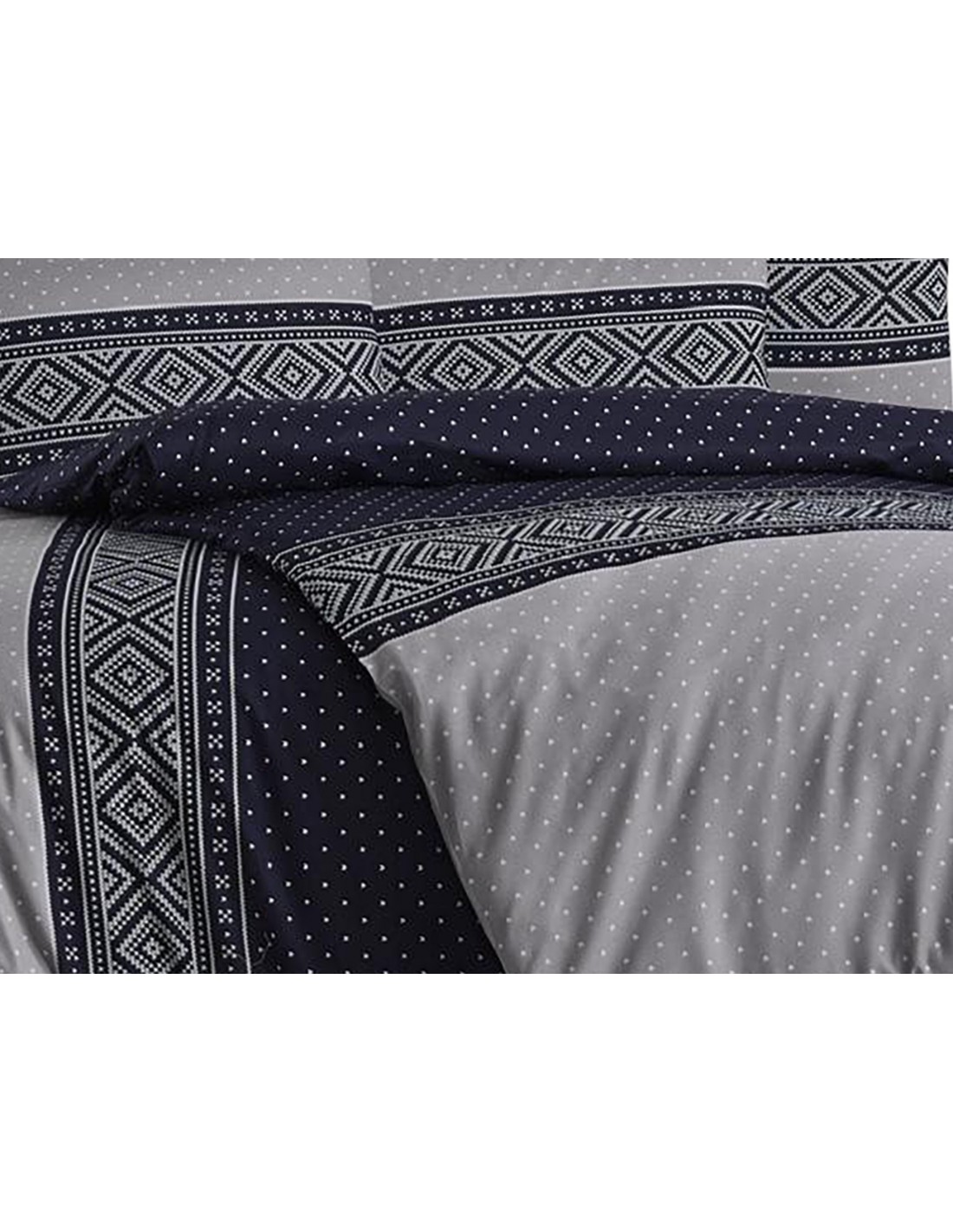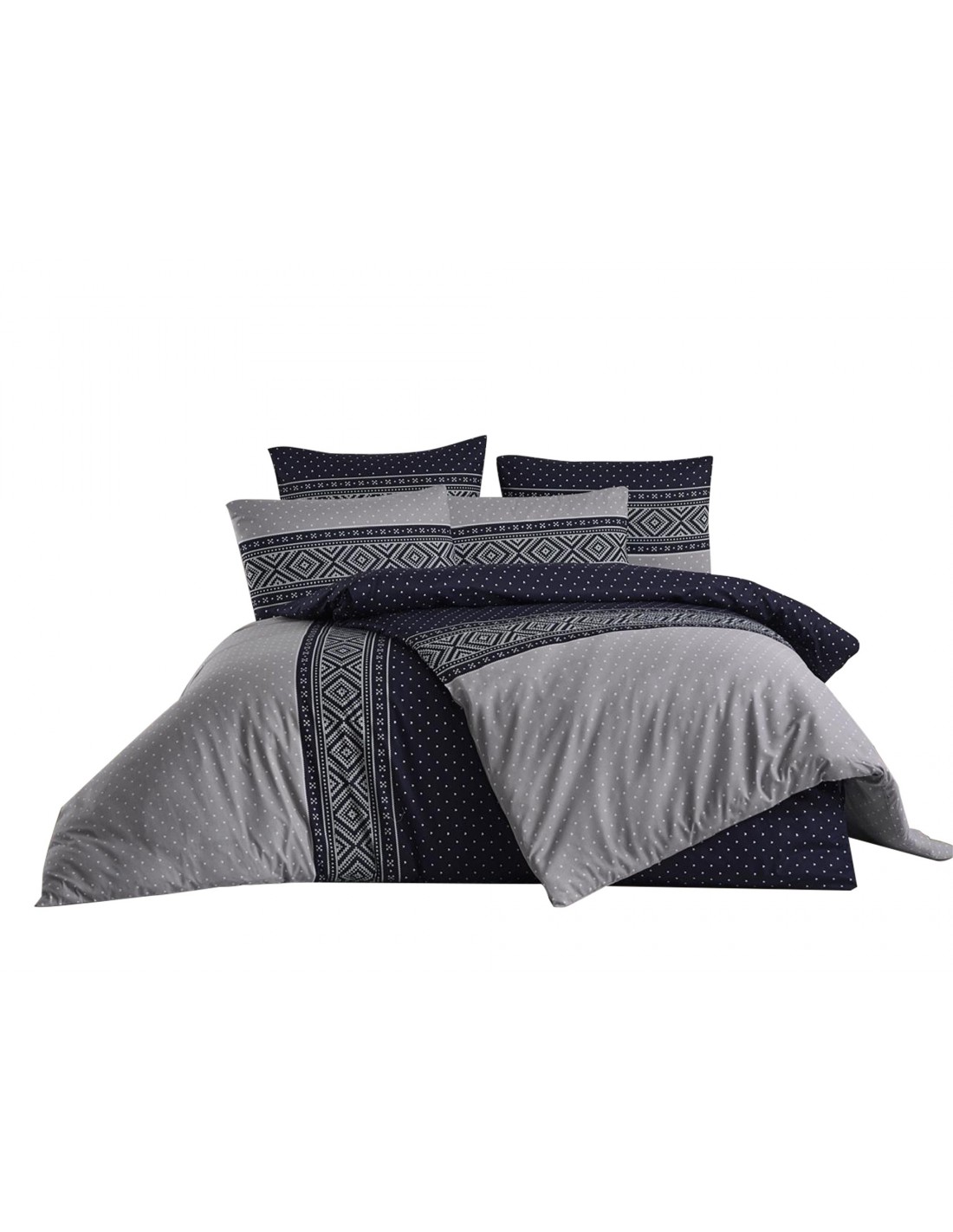 Ensemble parure de lit imprimé comprenant une housse de couette 240x220cm et 2 taies d'oreillers 65x65cm, 100% Coton, 57 fils/cm². Peut être une très bonne idée cadeau car livré dans un bel emballage cartonné. Boutons au pied.