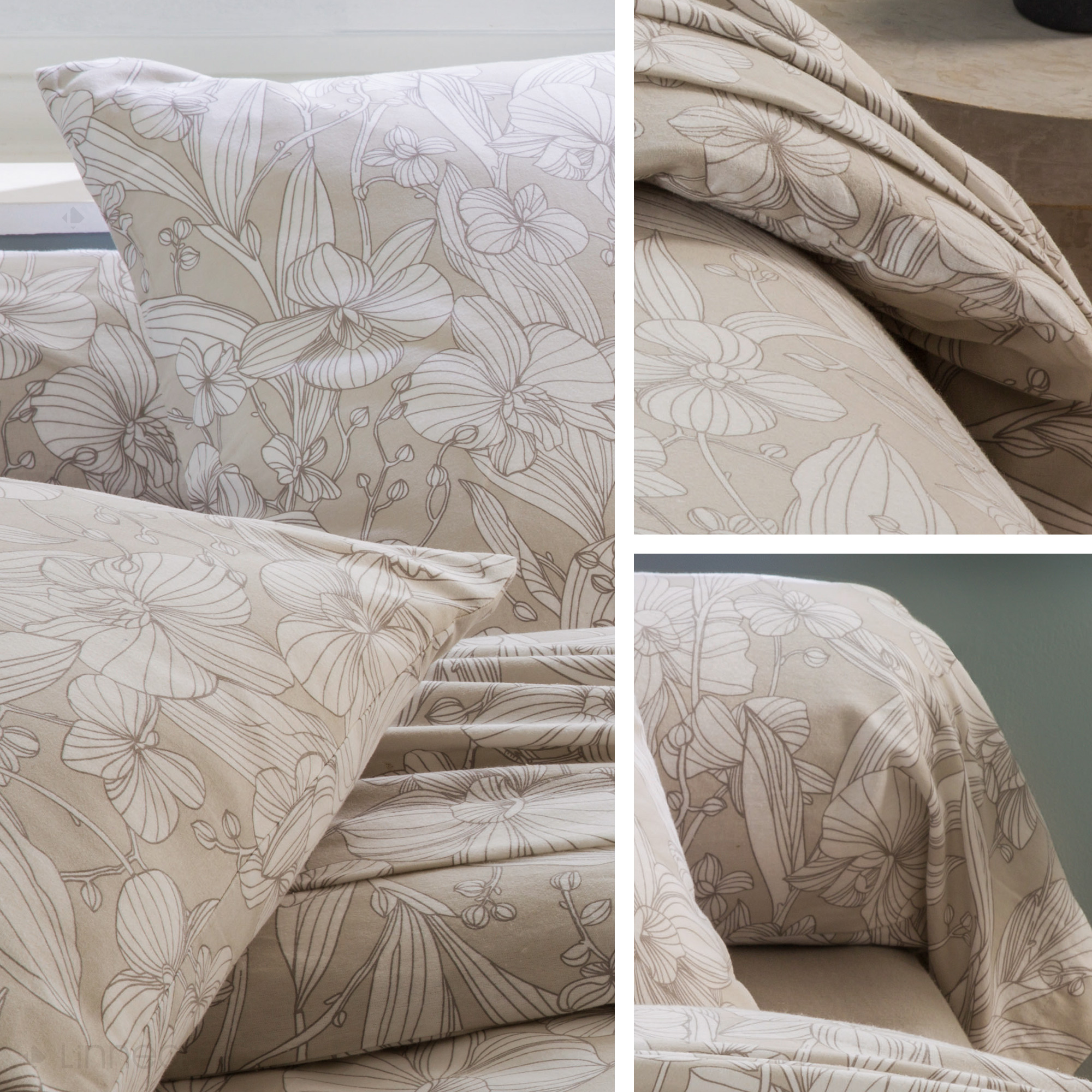 La parure de lit Orchidée en flanelle 100% coton incarne à la fois le confort et la modernité. Elle est douce au toucher et offre une chaleur douillette grâce à sa matière en flanelle, ce qui en fait un choix parfait pour les nuits fraîches d'automne et d'hiver.