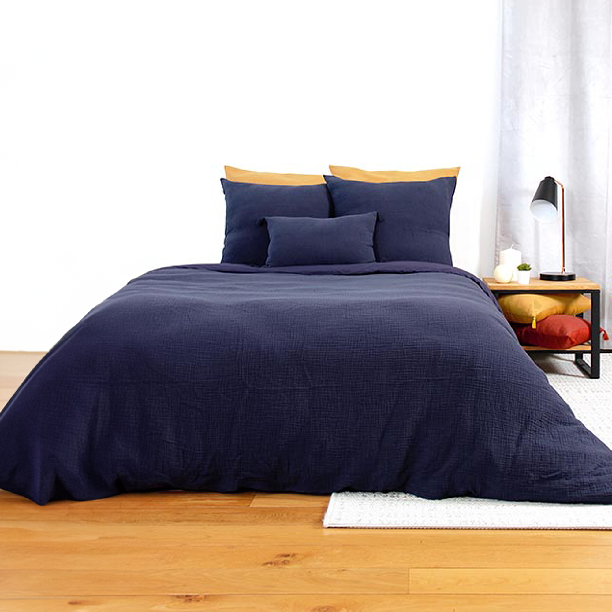 Parure de lit 240x220 cm double gaze de coton GAZGAZ bleu marine 3 pièces