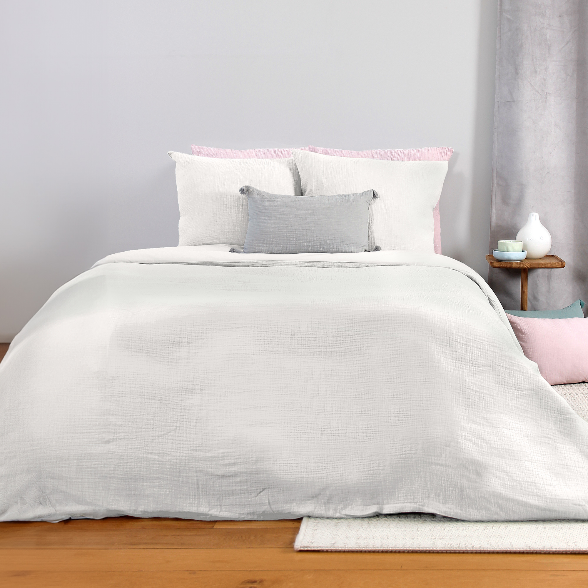 Parure de lit 260x240 cm double gaze de coton GAZGAZ blanc 3 pièces