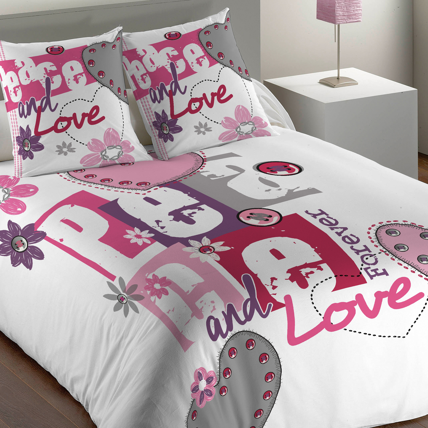 Parure de Lit Peace And Love avec housse de couette et taie(s) d'oreiller