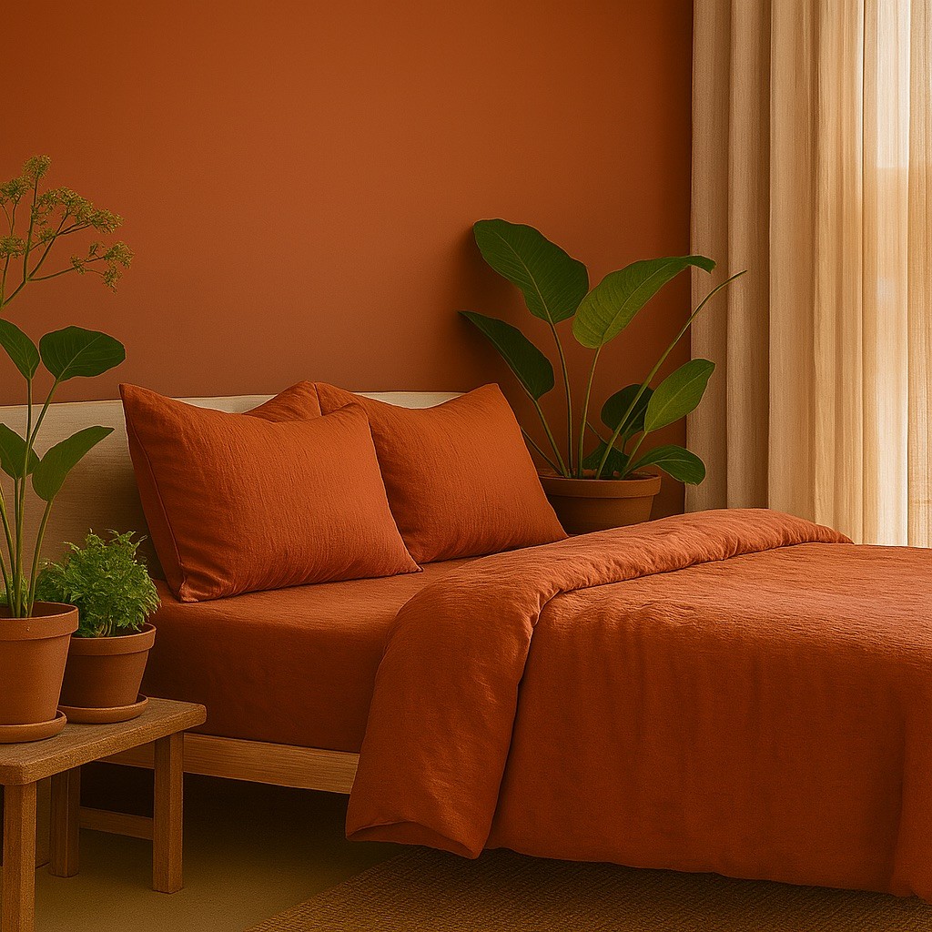 Parure de lit - PROMO LINGE - Alia - Gaze de coton - OEKO-TEX - Terracotta
