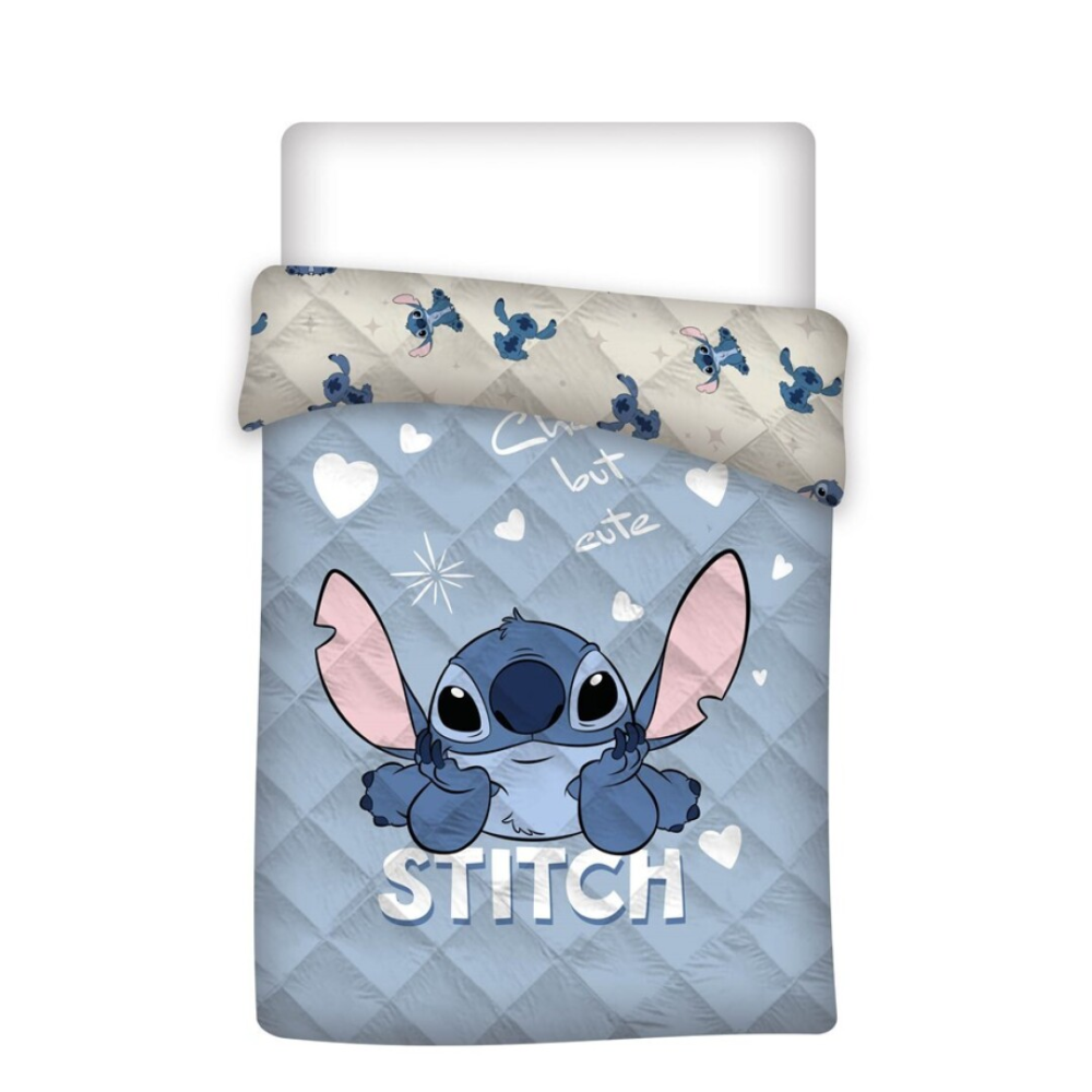On retrouve les personnages principaux du dessin animé Stitch , sur l'intégralité de la Parure de lit.