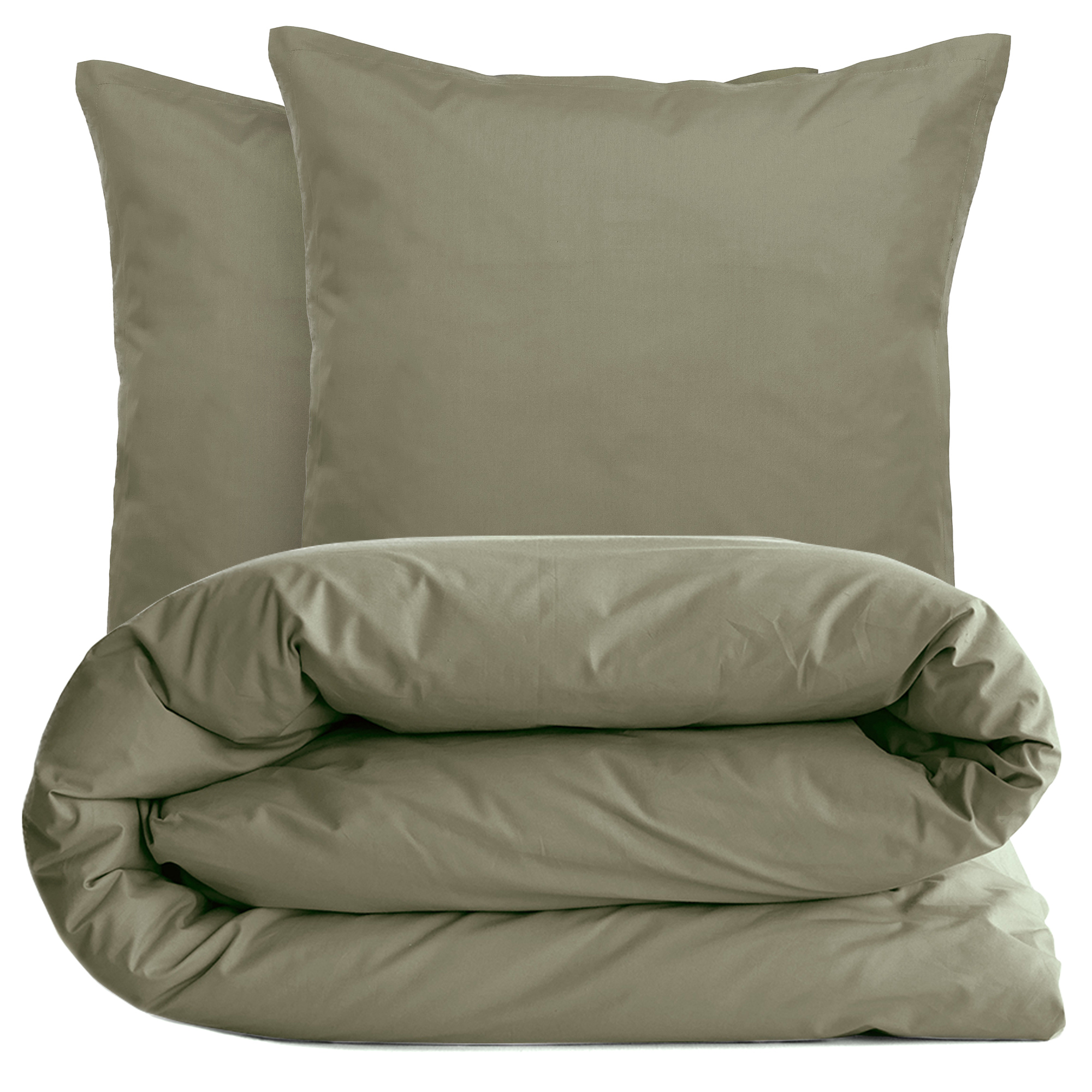 Parure de lit 240x220 cm uni percale de coton MANOIR vert Mousse