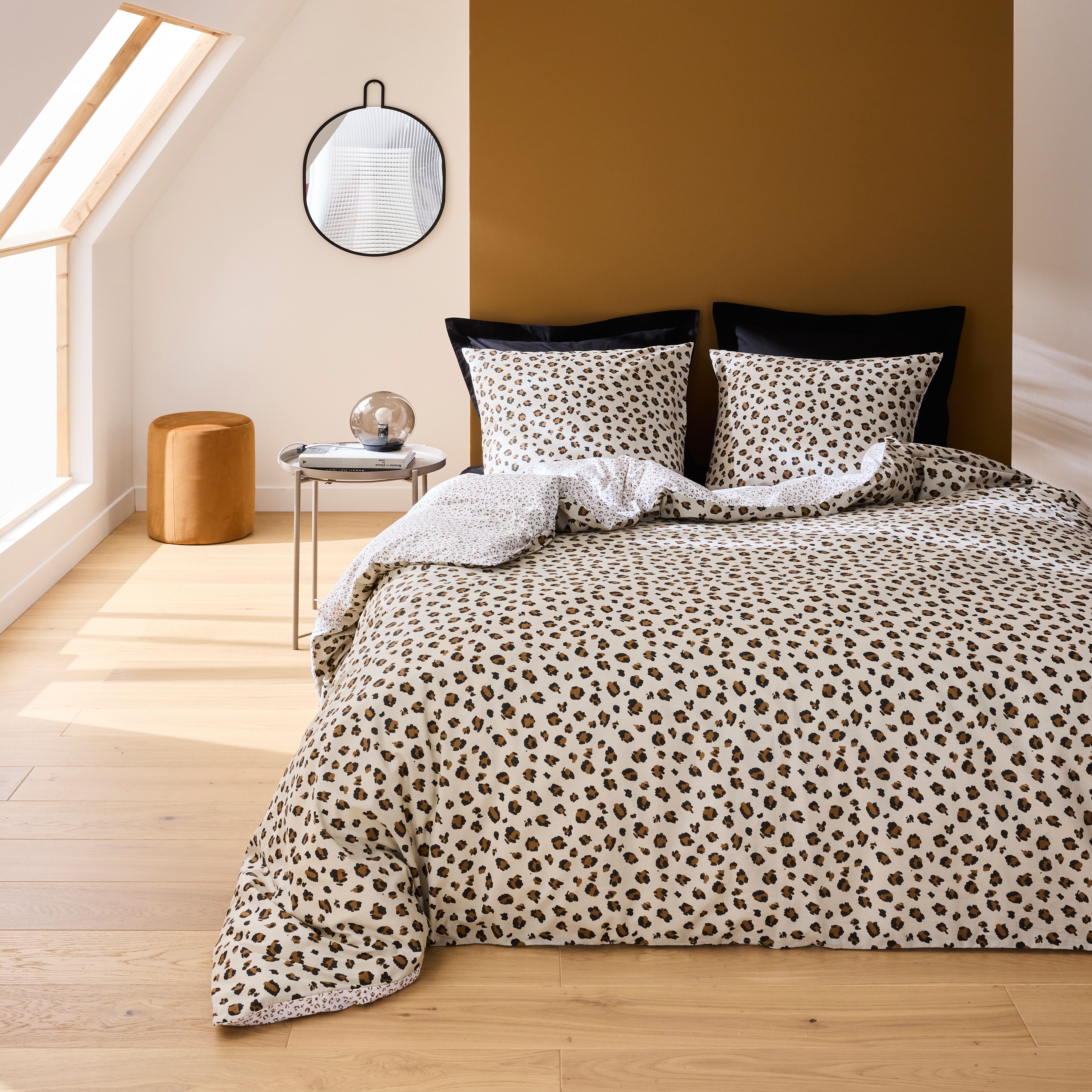 Tissaia Parure de Lit fantaisie avec une housse de couette 140x200cm et 1 taie d'oreiller 63x63cm - coloris bleu beige marron leopard- 100% Coton