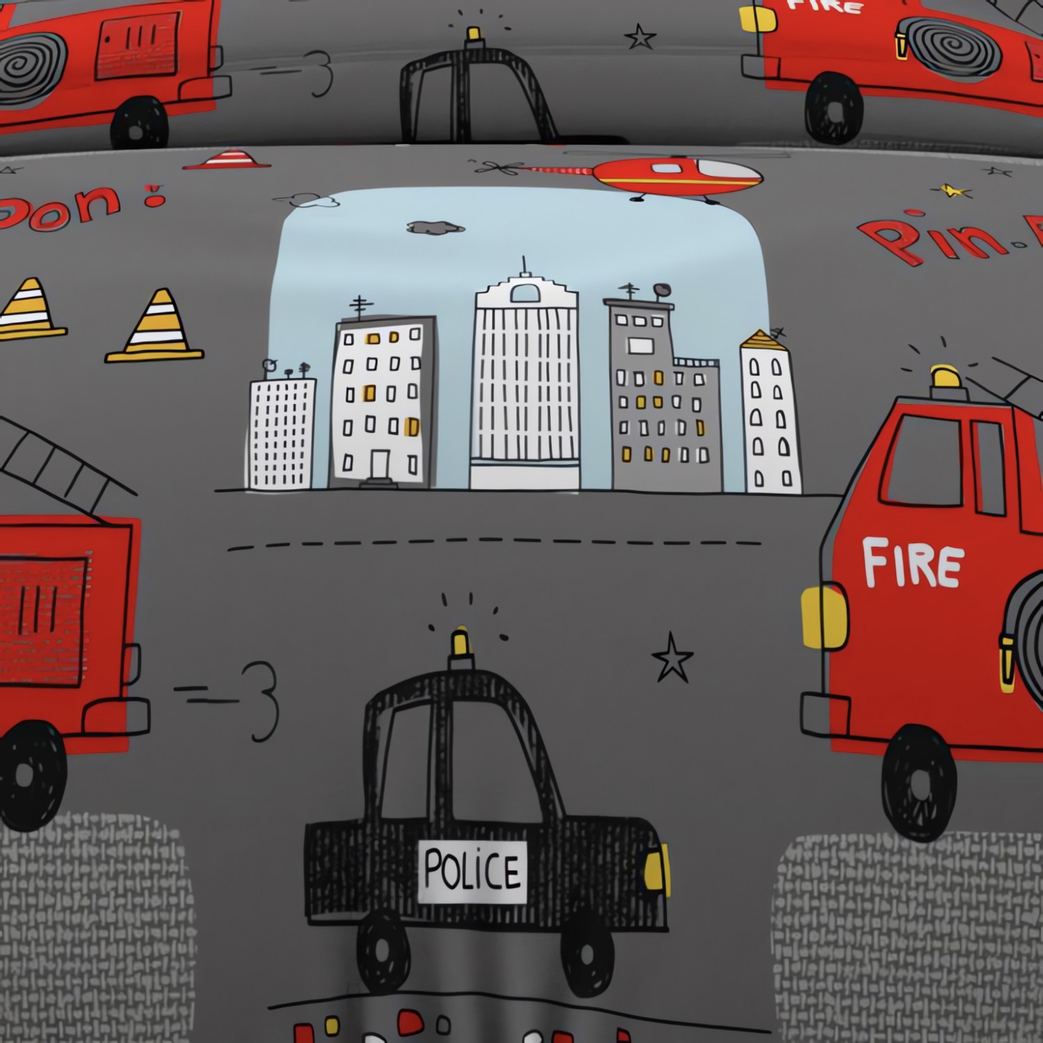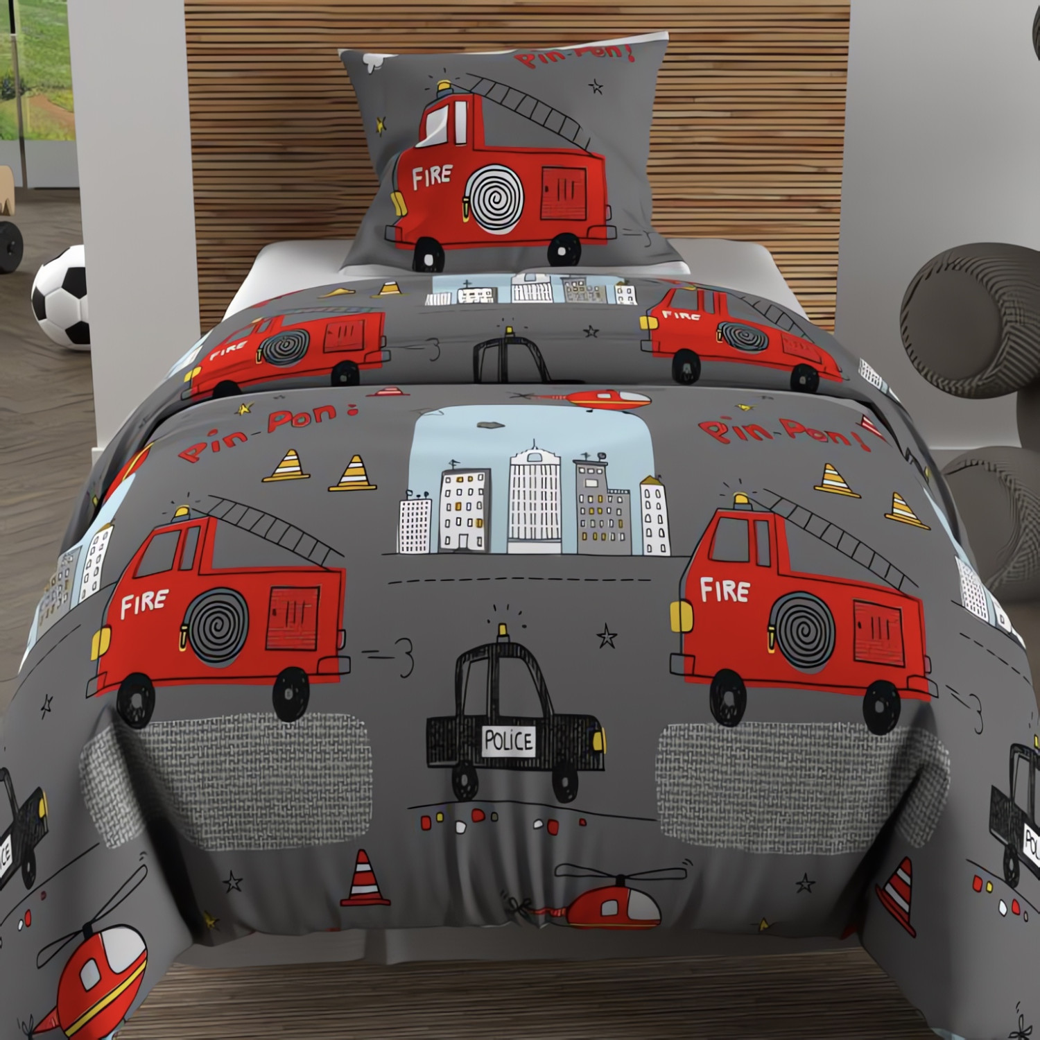 Parure housse de couette 140x200 cm POMPIERS, 100% coton 57 fils/cm2, par Soleil d'Ocre