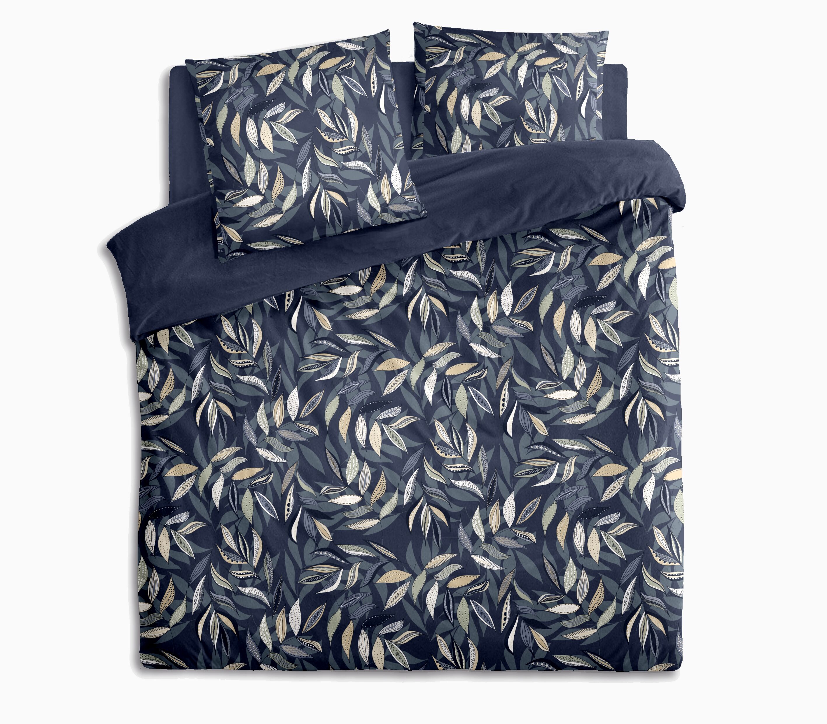 Parure housse de couette 200x200 Cm + 2 Taies d'oreiller 63x63 Cm bleu marine TISSAIA BASICS