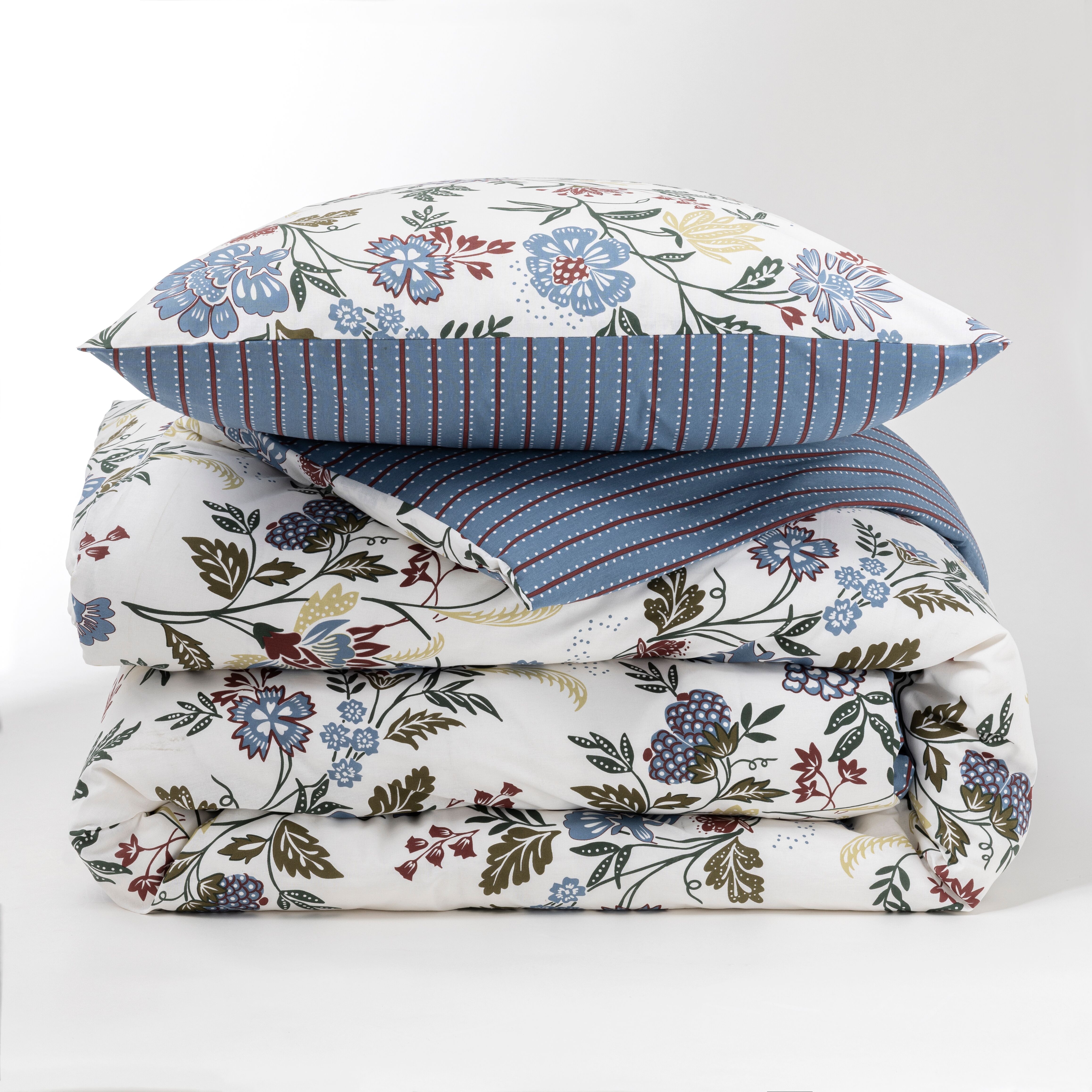 Tissaia Parure de Lit fantaisie avec une housse de couette 260x240cm et 2 taies d'oreiller 63x63cm - coloris beige bleu fleur- 100% Coton